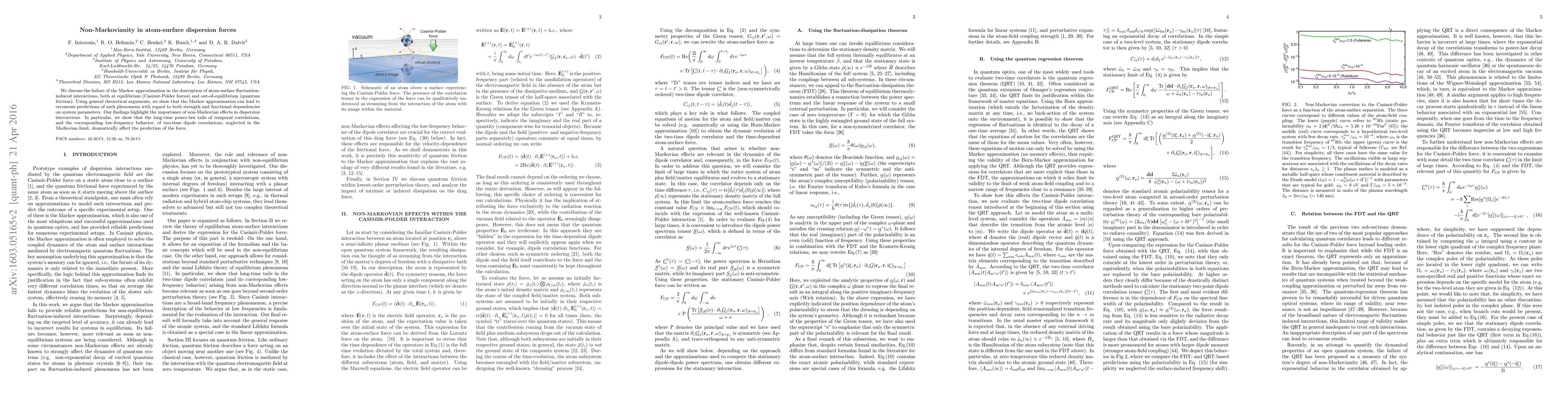 This paper demonstrates the failure of the Markov approximation in describing atom-surface dispersion forces, showing that non-Markovian effects significantly impact predictions of both equilibrium and out-of-equilibrium interactions. It highlights the importance of considering long-time correlations and low-frequency behaviors to accurately model these forces.