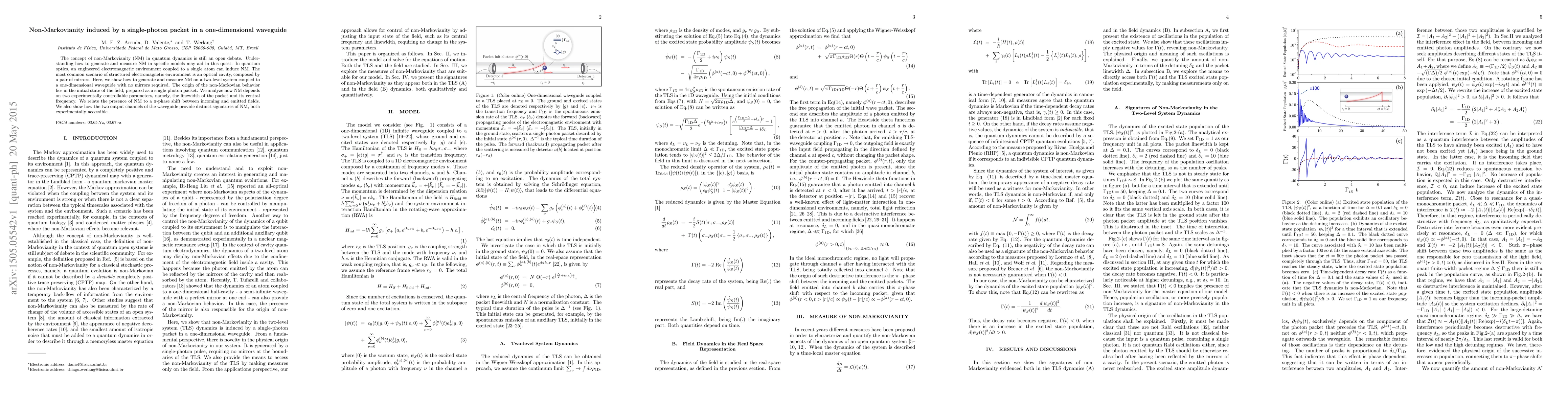This paper demonstrates how a single-photon packet in a one-dimensional waveguide can induce non-Markovianity in quantum dynamics without the need for mirrors. The study reveals that the degree of non-Markovianity depends on the linewidth and central frequency of the photon packet, and it can be experimentally observed through distinct signatures in the waveguide's output channels.