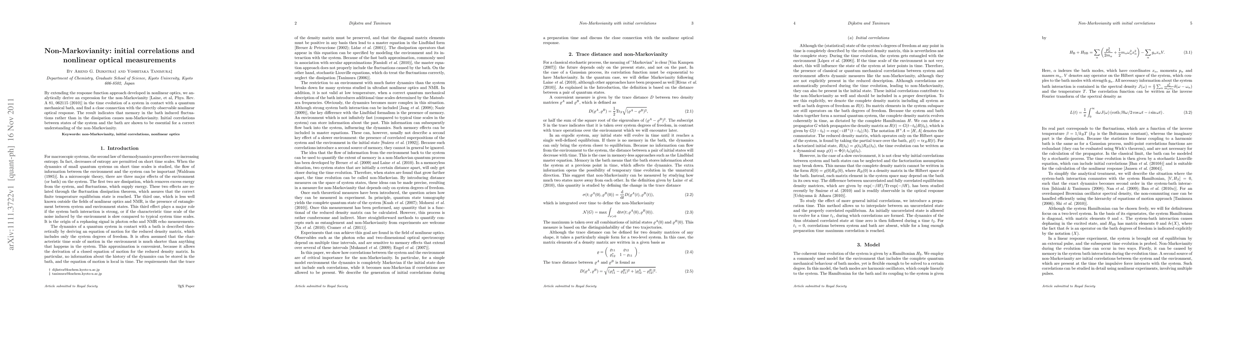 This paper derives an expression for non-Markovianity in quantum systems using nonlinear optics, revealing that memory effects in the quantum bath are linked to fluctuations rather than dissipation. Initial correlations between system and bath states are crucial for understanding non-Markovianity.
