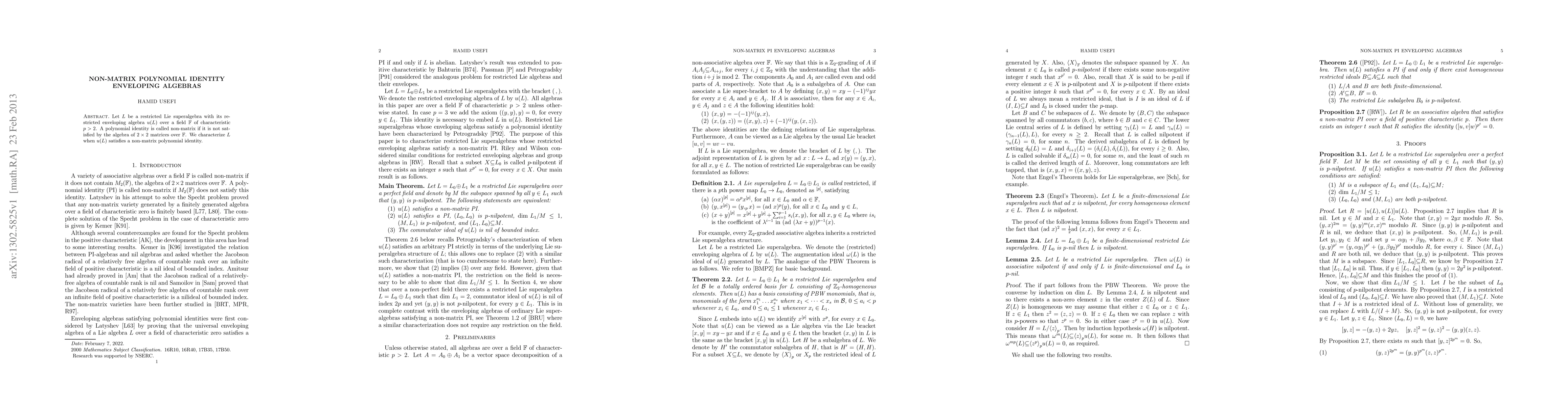 Let L be a restricted Lie superalgebra with its restricted enveloping algebra u(L) over a field F of characteristic p>2. A polynomial identity is called non-matrix if it is not satisfied by the algebra of 2\times 2 matrices over F. We characterize L when u(L) satisfies a non-matrix polynomial identity.