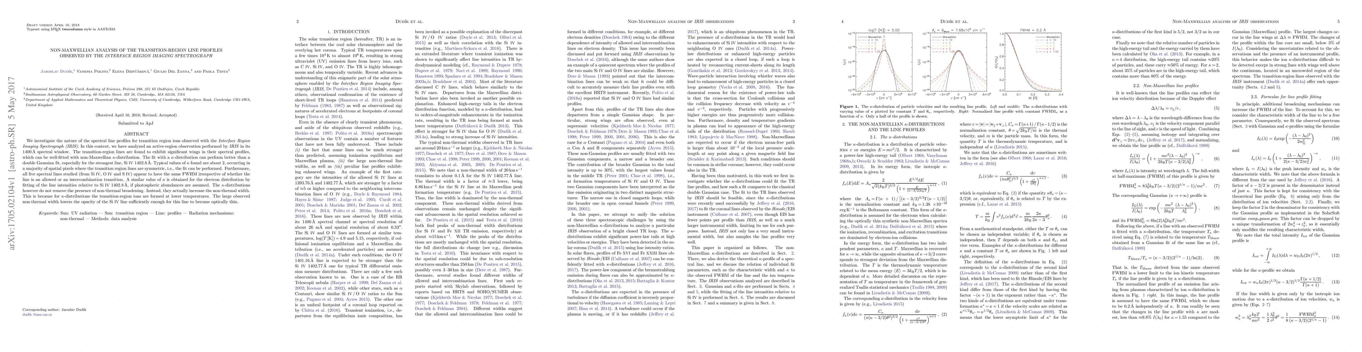 This study analyzes non-Maxwellian kappa-distributions to fit spectral line profiles of transition region ions observed by IRIS, finding significant wings that fit better than double Gaussians, especially for the Si IV 1402.8 Å line. The kappa-distributions increase non-thermal width, indicating lower formation temperatures and suggesting the Si IV line becomes optically thin.