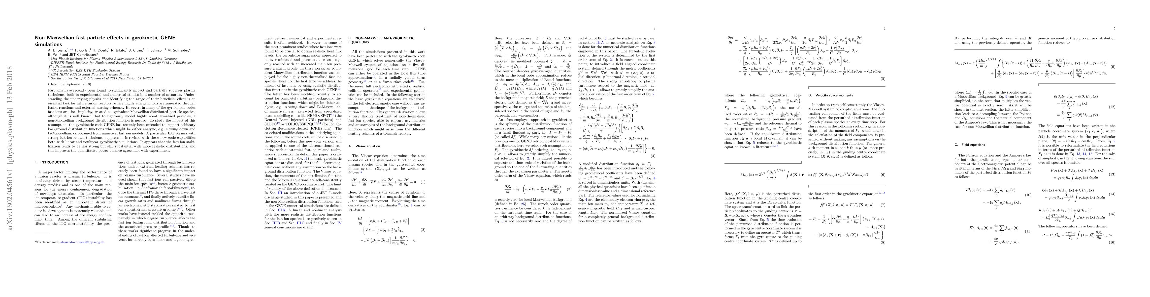 The extension of the GENE code to support arbitrary background distribution functions, enabling the study of non-Maxwellian fast ion effects in gyrokinetic simulations.