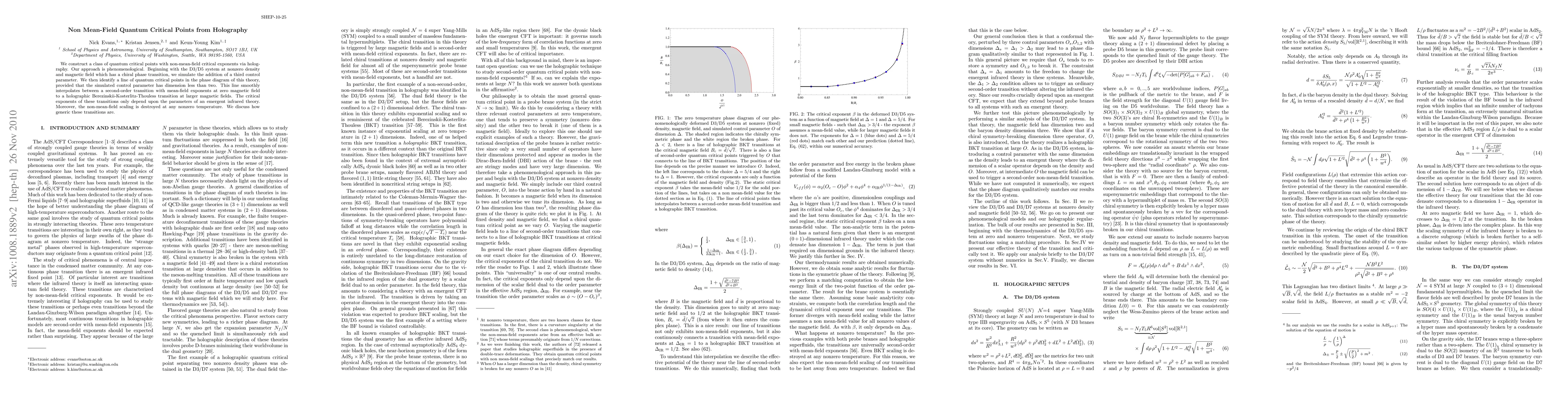 We construct a class of quantum critical points with non-mean-field critical exponents via holography. Our approach is phenomenological. Beginning with the D3/D5 system at nonzero density and magnetic field which has a chiral phase transition, we simulate the addition of a third control parameter. We then identify a line of quantum critical points in the phase diagram of this theory, provided that the simulated control parameter has dimension less than two. This line smoothly interpolates between a second-order transition with mean-field exponents at zero magnetic field to a holographic Berezinskii-Kosterlitz-Thouless transition at larger magnetic fields. The critical exponents of these transitions only depend upon the parameters of an emergent infrared theory. Moreover, the non-mean-field scaling is destroyed at any nonzero temperature. We discuss how generic these transitions are.