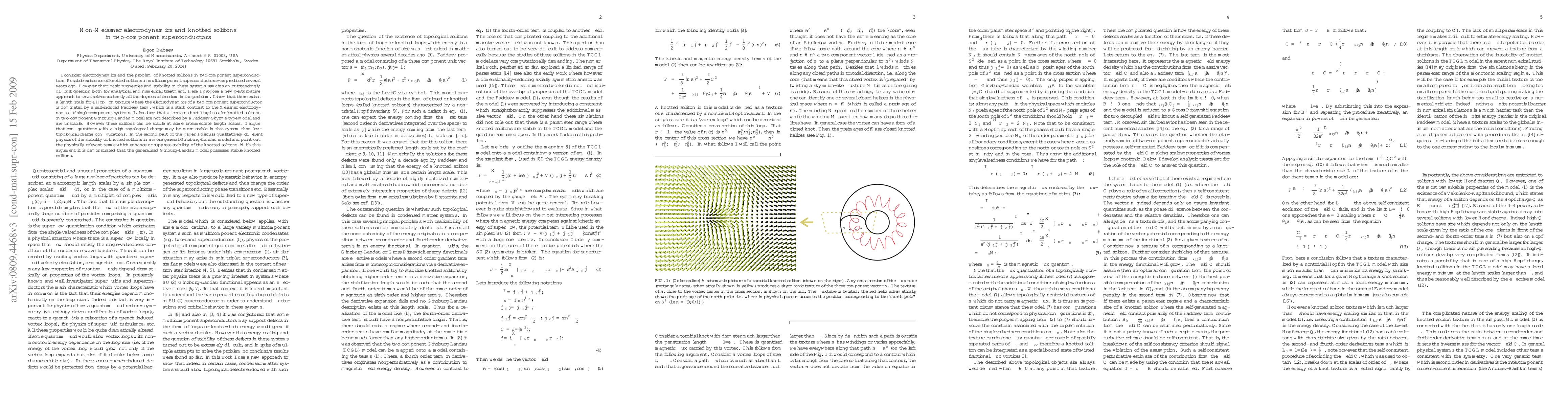This paper explores the electrodynamics of two-component superconductors, focusing on the existence and stability of knotted solitons known as Hopfions. It proposes a new perturbative approach to analyze these solitons, revealing that while they are unstable at short length scales, they can become stable at intermediate scales, especially those with higher topological charges.