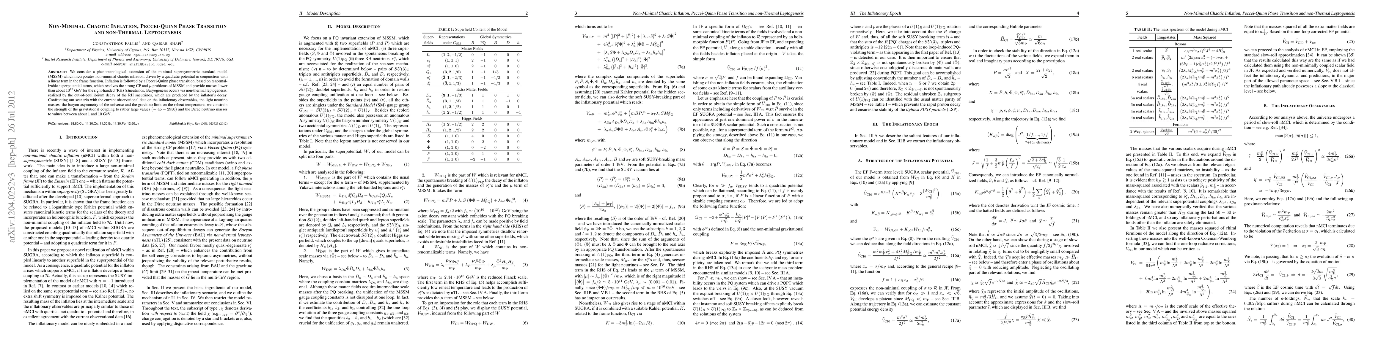 This paper extends the MSSM to include non-minimal chaotic inflation and a Peccei-Quinn phase transition, resolving strong CP and mu problems, followed by non-thermal leptogenesis from RH sneutrino decay. The study constrains gravitational coupling and neutrino masses based on observational data.