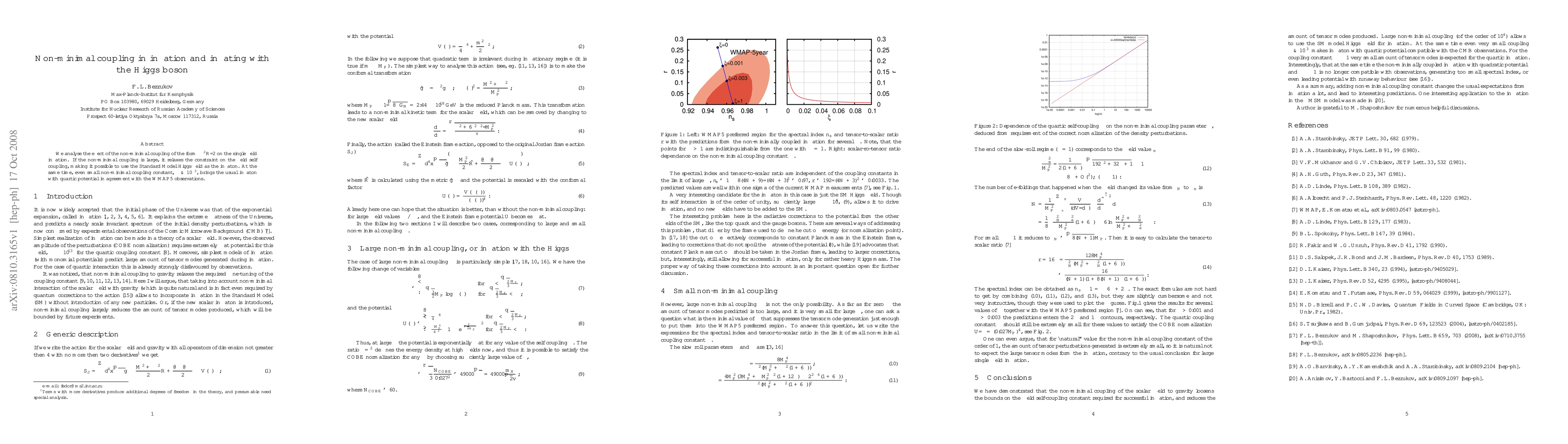 This paper investigates the impact of non-minimal coupling $\xi\phi^2R/2$ on single field inflation, showing that large couplings can enable the Standard Model Higgs field to act as the inflaton. Even small non-minimal coupling constants $\xi\gtrsim10^{-3}$ align quartic potential inflatons with WMAP5 observational data.