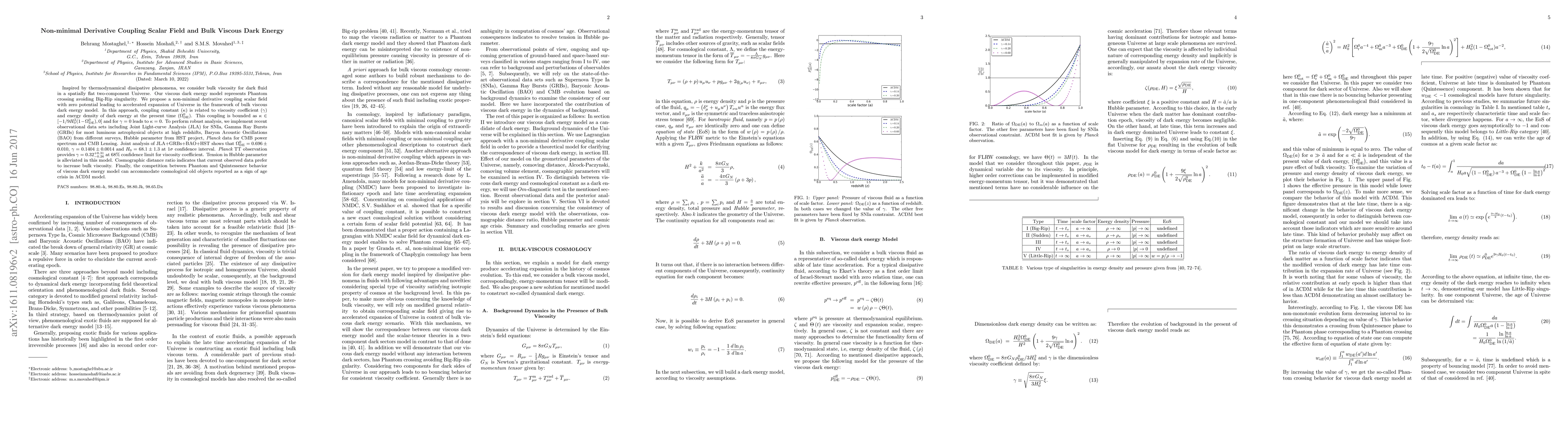 Inspired by thermodynamical dissipative phenomena, we consider bulk viscosity for dark fluid in a spatially flat two-component Universe. Our viscous dark energy model represents Phantom crossing avoiding Big-Rip singularity. We propose a non-minimal derivative coupling scalar field with zero potential leading to accelerated expansion of Universe in the framework of bulk viscous dark energy model. In this approach, coupling constant ($\kappa$) is related to viscosity coefficient ($\gamma$) and energy density of dark energy at the present time ($\Omega_{\rm DE}^0$). This coupling is bounded as $\kappa\in [-1/9H_0^2(1-\Omega_{\rm DE}^0), 0]$ and for $\gamma=0$ leads to $\kappa=0$. To perform robust analysis, we implement recent observational data sets including Joint Light-curve Analysis (JLA) for SNIa, Gamma Ray Bursts (GRBs) for most luminous astrophysical objects at high redshifts, Baryon Acoustic Oscillations (BAO) from different surveys, Hubble parameter from HST project, {\it Planck} data for CMB power spectrum and CMB Lensing. Joint analysis of JLA$+$GRBs$+$BAO$+$HST shows that $\Omega_{\rm DE}^0=0.696\pm 0.010$, $\gamma=0.1404\pm0.0014$ and $H_0=68.1\pm1.3$ at $1\sigma$ confidence interval. {\it Planck} TT observation provides $\gamma=0.32^{+0.31}_{-0.26}$ at $68\%$ confidence limit for viscosity coefficient. Tension in Hubble parameter is alleviated in this model. Cosmographic distance ratio indicates that current observed data prefer to increase bulk viscosity. Finally, the competition between Phantom and Quintessence behavior of viscous dark energy model can accommodate cosmological old objects reported as a sign of age crisis in $\Lambda$CDM model.