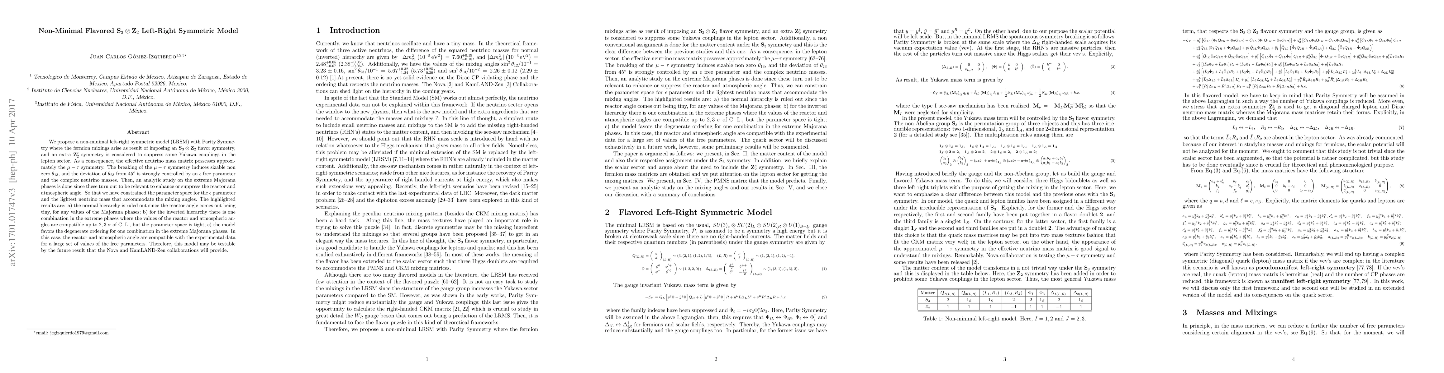 We propose a non-minimal left-right symmetric model (LRSM) with Parity Symmetry where the fermion mixings arise as result of imposing an ${\bf S}_{3}\otimes {\bf Z}_{2}$ flavor symmetry, and an extra ${\bf Z}^{e}_{2}$ symmetry is considered to suppress some Yukawa couplings in the lepton sector. As a consequence, the effective neutrino mass matrix possesses approximately the $\mu-\tau$ symmetry. The breaking of the $\mu-\tau$ symmetry induces sizable non zero $\theta_{13}$, and the deviation of $\theta_{23}$ from $45^{\circ}$ is strongly controlled by an $\epsilon$ free parameter and the complex neutrino masses. Then, an analytic study on the extreme Majorana phases is done since these turn out to be relevant to enhance or suppress the reactor and atmospheric angle. So that we have constrained the parameter space for the $\epsilon$ parameter and the lightest neutrino mass that accommodate the mixing angles. The highlighted results are: a) the normal hierarchy is ruled out since the reactor angle comes out being tiny, for any values of the Majorana phases; b) for the inverted hierarchy there is one combination in the extreme phases where the values of the reactor and atmospheric angles are compatible up to $2, 3~\sigma$ of C. L., but the parameter space is tight; c) the model favors the degenerate ordering for one combination in the extreme Majorana phases. In this case, the reactor and atmospheric angle are compatible with the experimental data for a large set of values of the free parameters. Therefore, this model may be testable by the future result that the Nova and KamLAND-Zen collaborations will provide.