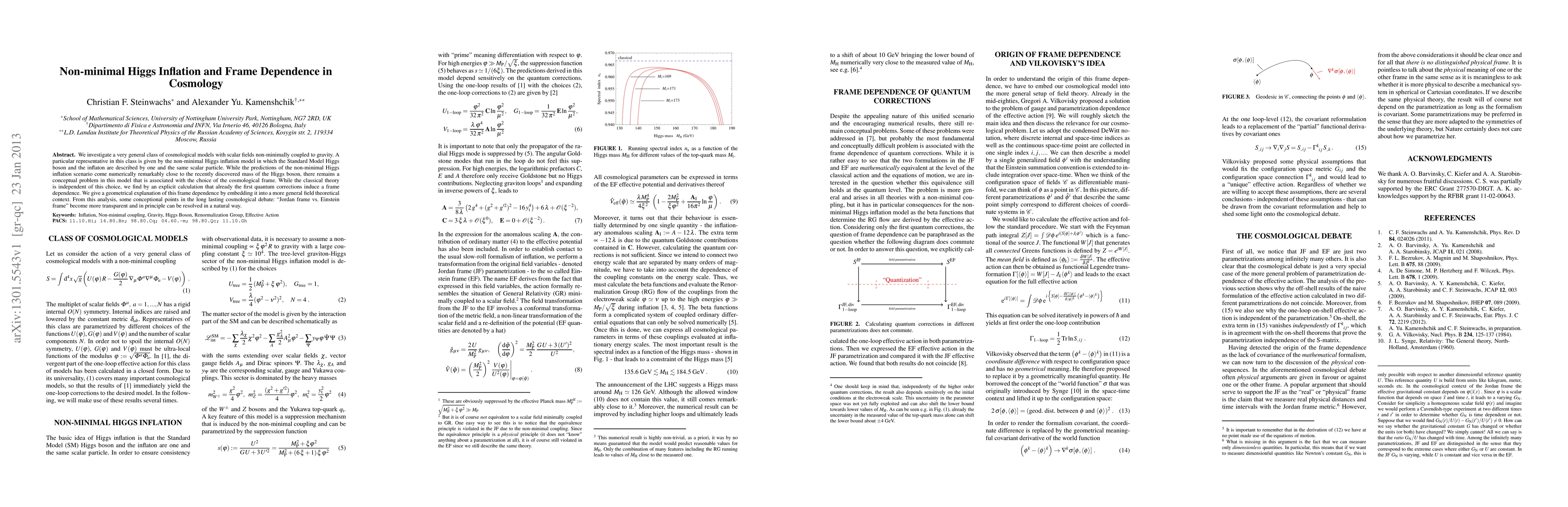 This paper explores non-minimal Higgs inflation models where the Standard Model Higgs boson and the inflaton are unified. It reveals that while classical theory is frame-independent, quantum corrections introduce a frame dependence, complicating the "Jordan frame vs. Einstein frame" debate in cosmology.