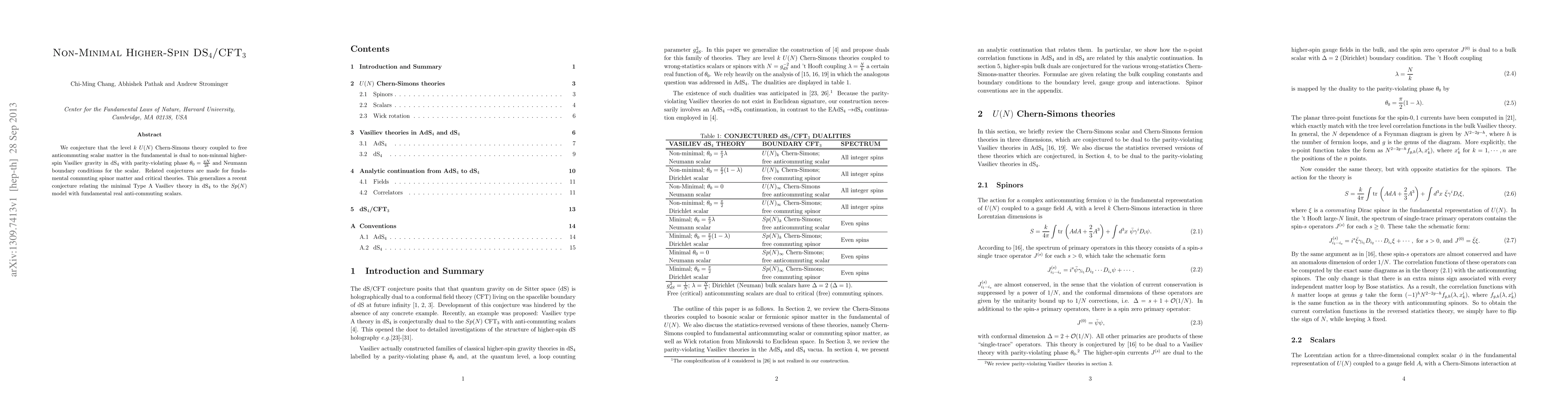 We conjecture that the level k U(N) Chern-Simons theory coupled to free anticommuting scalar matter in the fundamental is dual to non-minmal higher-spin Vasiliev gravity in dS4 with parity-violating phase \theta0 = \pi N/2k and Neumann boundary conditions for the scalar. Related conjectures are made for fundamental commuting spinor matter and critical theories. This generalizes a recent conjecture relating the minimal Type A Vasiliev theory in dS4 to the Sp(N) model with fundamental real anti-commuting scalars.