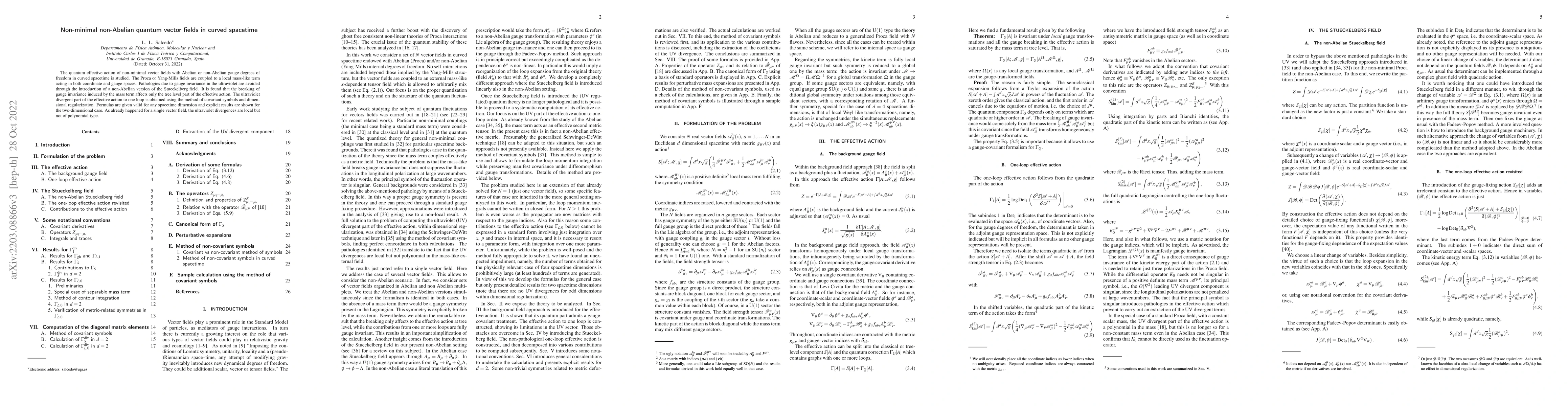 This paper investigates the quantum effective action of non-minimal vector fields in curved spacetime, focusing on both Abelian and non-Abelian gauge fields. It introduces a non-Abelian Stueckelberg field to avoid ultraviolet pathologies, finding that gauge invariance breaking affects only the tree level of the effective action. The study uses covariant symbols and dimensional regularization to derive ultraviolet divergent parts to one loop, showing local but non-polynomial divergences.