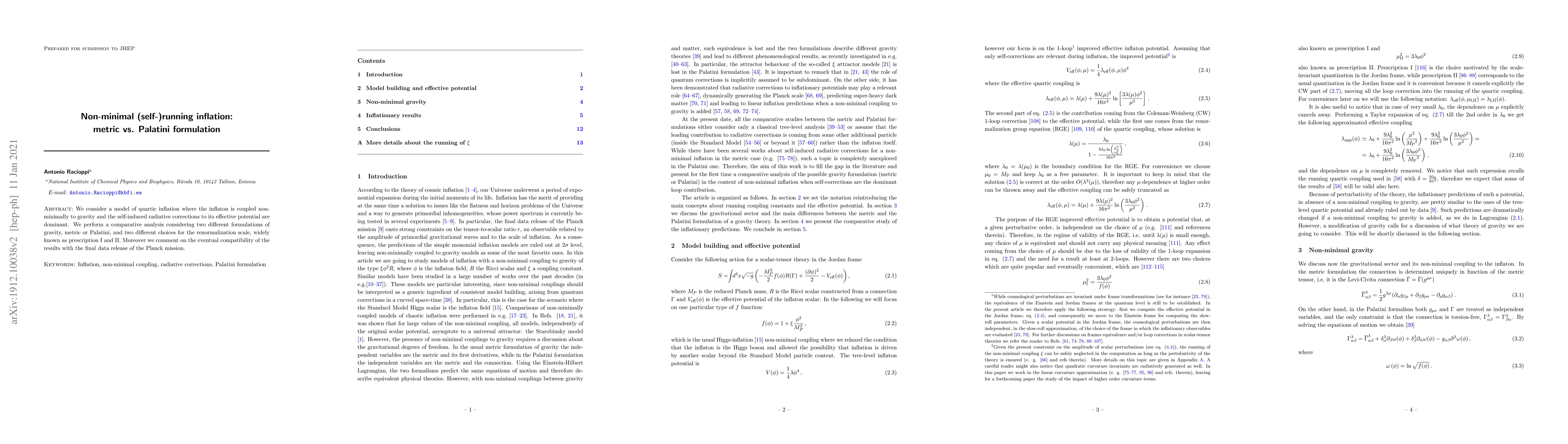 This paper examines a quartic inflationary model with non-minimal inflaton-gravity coupling, comparing metric and Palatini formulations of gravity, and discusses the impact of different renormalization prescriptions on the model's predictions, with a focus on compatibility with the Planck mission data.