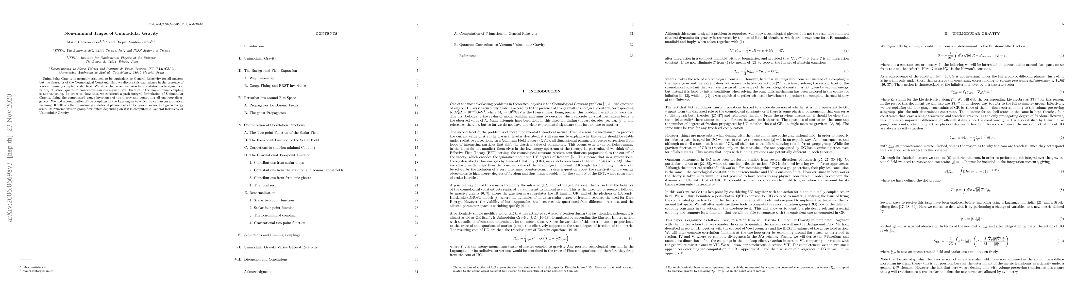 Unimodular Gravity is normally assumed to be equivalent to General Relativity for all matters but the character of the Cosmological Constant. Here we discuss this equivalence in the presence of a non-minimally coupled scalar field. We show that when we consider gravitation to be dynamical in a QFT sense, quantum corrections can distinguish both theories if the non-minimal coupling is non-vanishing. In order to show this, we construct a path integral formulation of Unimodular Gravity, fixing the complicated gauge invariance of the theory and computing all one-loop divergences. We find a combination of the couplings in the Lagrangian to which we can assign a physical meaning. It tells whether quantum gravitational phenomena can be ignored or not at a given energy scale. Its renormalization group flow differs depending on if it is computed in General Relativity or Unimodular Gravity.
