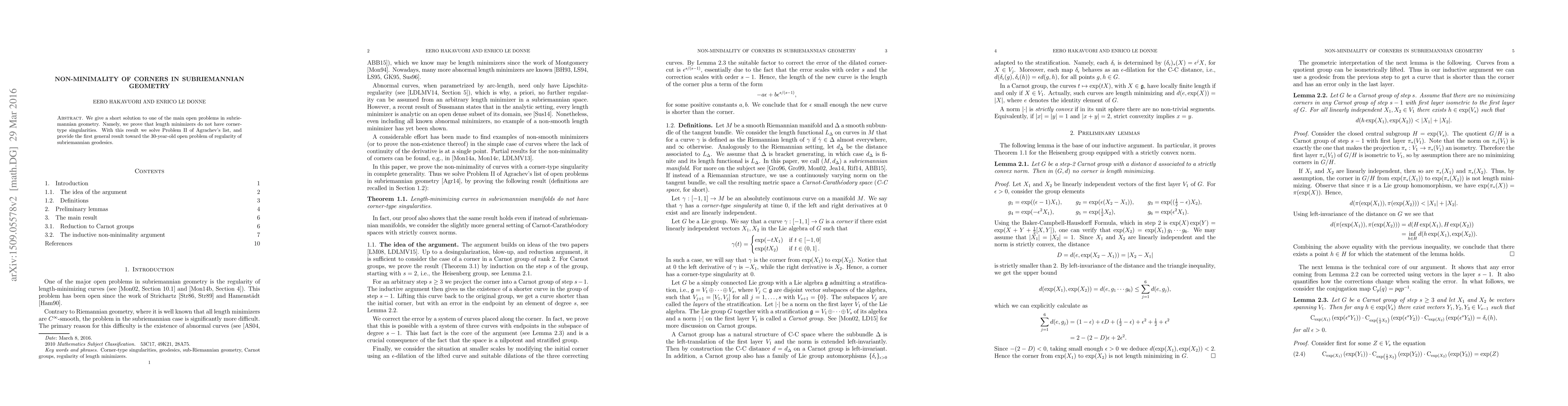 Researchers have proven that length minimizers in subriemannian geometry cannot have corner-type singularities, solving a 30-year-old open problem and providing insights into the regularity of geodesics.