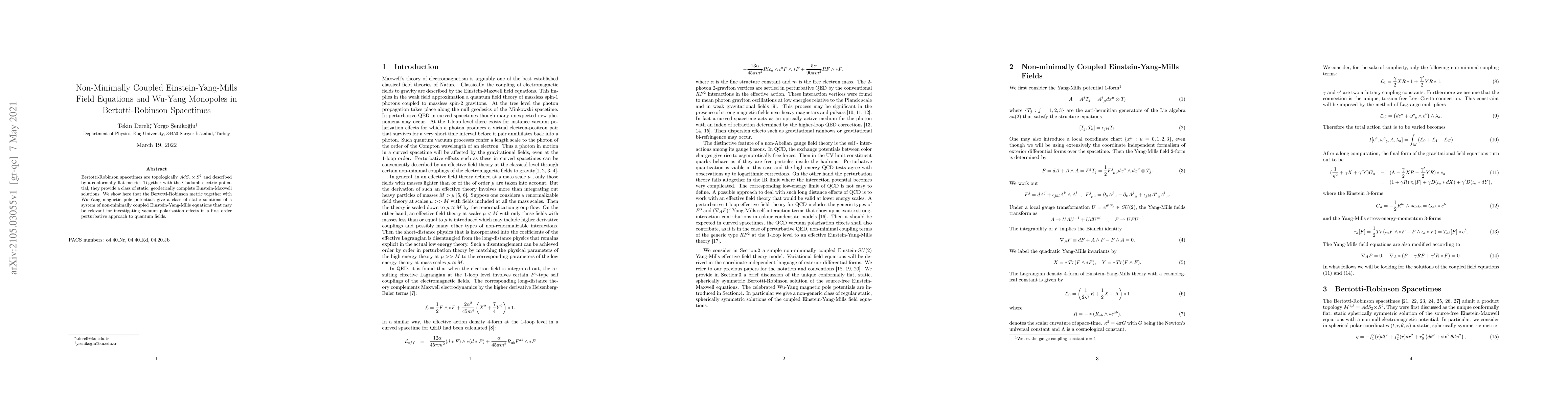 This paper explores the static solutions of non-minimally coupled Einstein-Yang-Mills equations in Bertotti-Robinson spacetimes, revealing how they incorporate Wu-Yang magnetic monopole potentials and may be significant for studying vacuum polarization effects in quantum field theory.