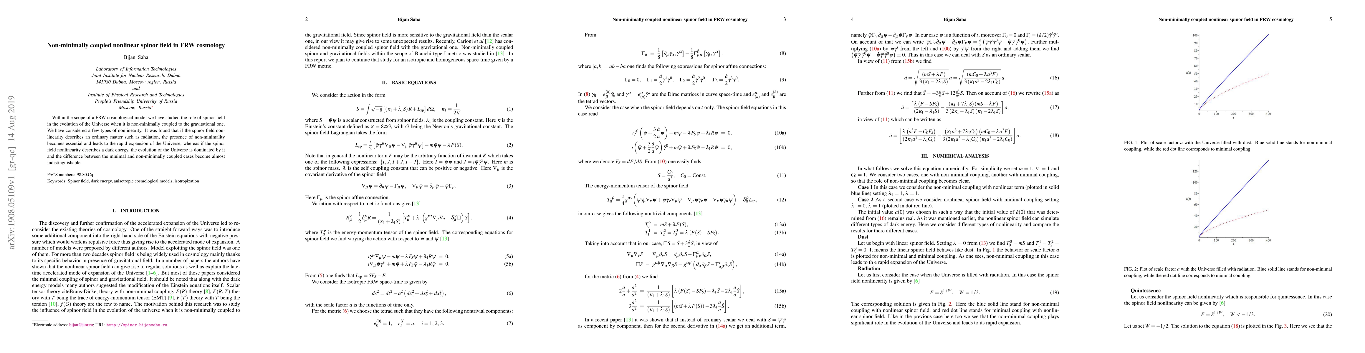This paper investigates the impact of non-minimally coupled spinor fields in a FRW cosmological model, revealing that non-minimality significantly accelerates the expansion of the universe when the spinor nonlinearity represents ordinary matter, while having negligible effect when it represents dark energy.