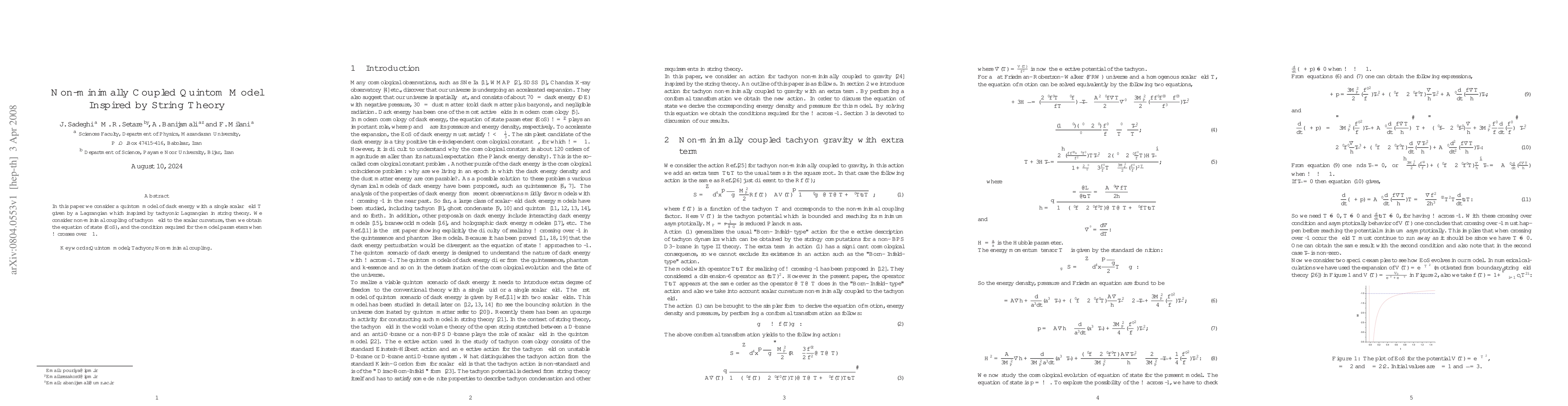This paper explores a quintom dark energy model with a non-minimally coupled scalar field $T$ derived from a tachyonic Lagrangian inspired by string theory. The study focuses on the conditions required for the equation of state to cross the phantom divide, $\omega = -1$.