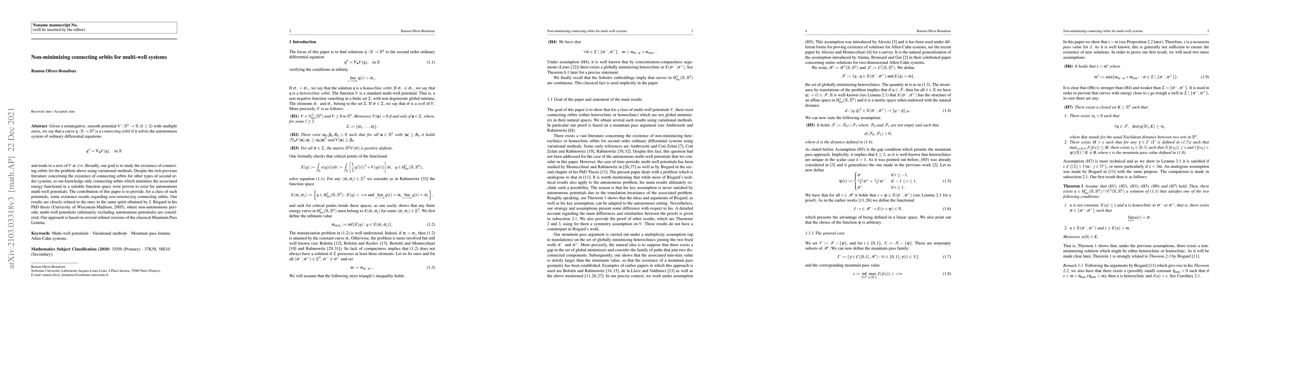 This paper studies the existence of connecting orbits for multi-well systems using variational methods, focusing on non-minimizing orbits in autonomous systems with smooth potentials.