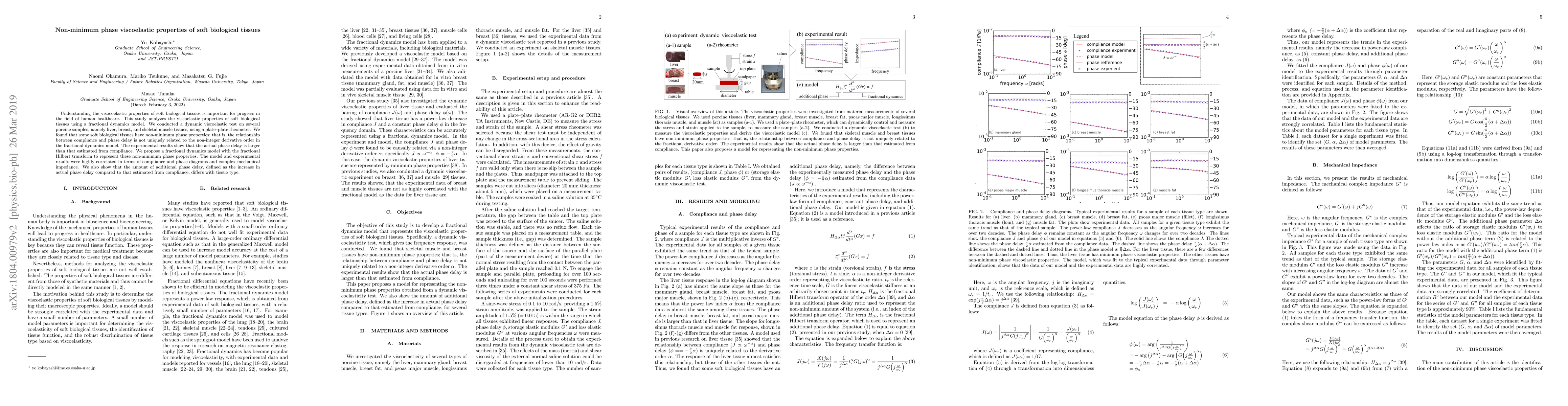 This study investigates the viscoelastic properties of soft biological tissues using a fractional dynamics model, revealing non-minimum phase characteristics in porcine liver, breast, and skeletal muscle tissues. The research proposes a fractional dynamics model with fractional Hilbert transform to accurately represent these properties, showing significant differences in additional phase delay across tissue types.