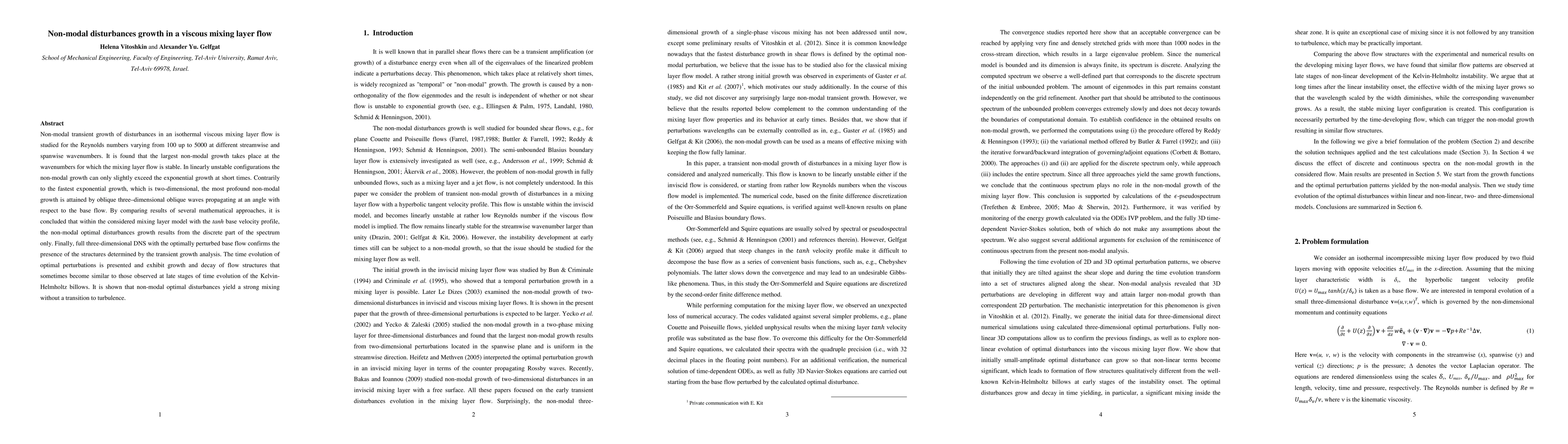This study investigates non-modal transient growth in viscous mixing layer flows at varying Reynolds numbers, finding that the largest non-modal growth occurs in stable configurations, primarily due to oblique three-dimensional waves. The analysis reveals strong mixing without a transition to turbulence.