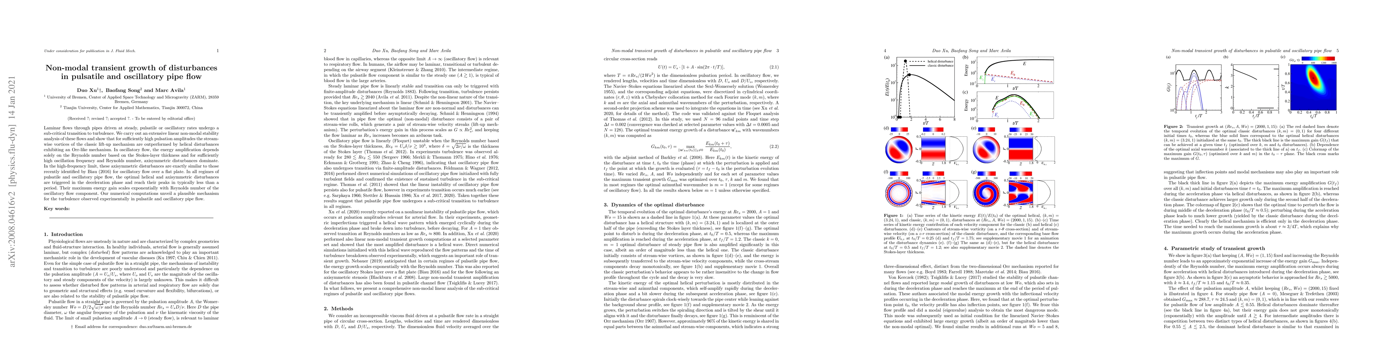 This paper investigates the non-modal transient growth of disturbances in pulsatile and oscillatory pipe flows, revealing that helical disturbances dominate over classic lift-up mechanisms at high pulsation amplitudes. The study shows that axisymmetric disturbances become significant in high-frequency oscillatory flows, providing a plausible mechanism for experimental turbulence observations.