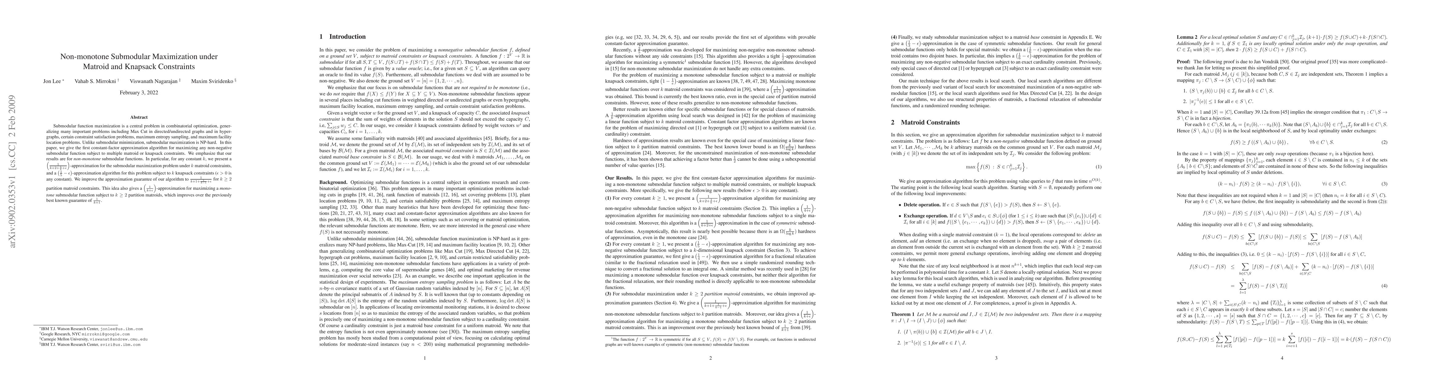 This paper presents the first constant-factor approximation algorithms for maximizing non-monotone submodular functions under multiple matroid or knapsack constraints. It introduces $(1/(k+2+1/k+\epsilon))$-approximation for $k$ matroid constraints and $(1/(5-\epsilon))$-approximation for $k$ knapsack constraints, with improvements for partition matroids.