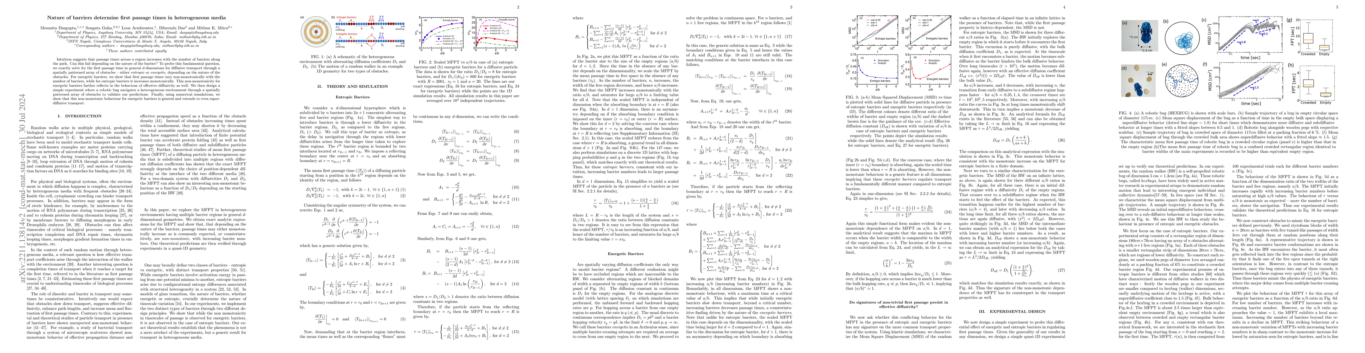 Usually time of passage across a region may be expected to increase with the number of barriers along the path. Can this intuition fail depending on the special nature of the barrier? We study experimentally the transport of a robotic bug which navigates through a spatially patterned array of obstacles. Depending on the nature of the obstacles we call them either entropic or energetic barriers. For energetic barriers we find that the timescales of first passage vary non-monotonically with the number of barriers, while for entropic barriers first passage times increase monotonically. We perform an exact analytic calculation to derive closed form solutions for the mean first passage time for different theoretical models of diffusion. Our analytic results capture this counter-intuitive non-monotonic behaviour for energetic barriers. We also show non-monotonic effective diffusivity in the case of energetic barriers. Finally, using numerical simulations, we show this non-monotonic behaviour for energetic barriers continues to hold true for super-diffusive transport. These results may be relevant for timescales of intra-cellular biological processes.