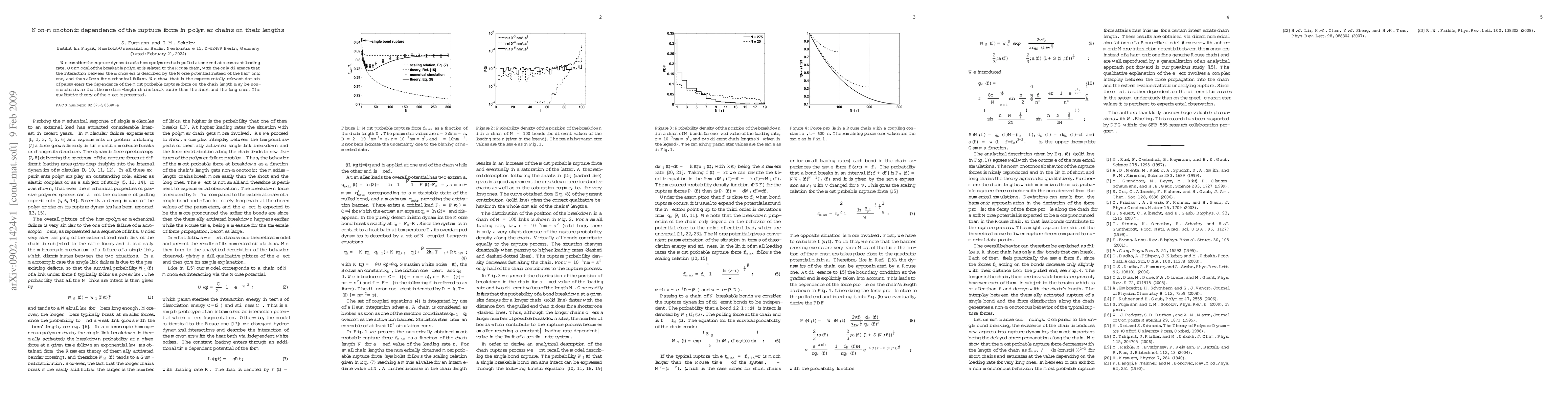 We consider the rupture dynamics of a homopolymer chain pulled at one end at a constant loading rate. Our model of the breakable polymer is related to the Rouse chain, with the only difference that the interaction between the monomers is described by the Morse potential instead of the harmonic one, and thus allows for mechanical failure. We show that in the experimentally relevant domain of parameters the dependence of the most probable rupture force on the chain length may be non-monotonic, so that the medium-length chains break easier than the short and the long ones. The qualitative theory of the effect is presented.