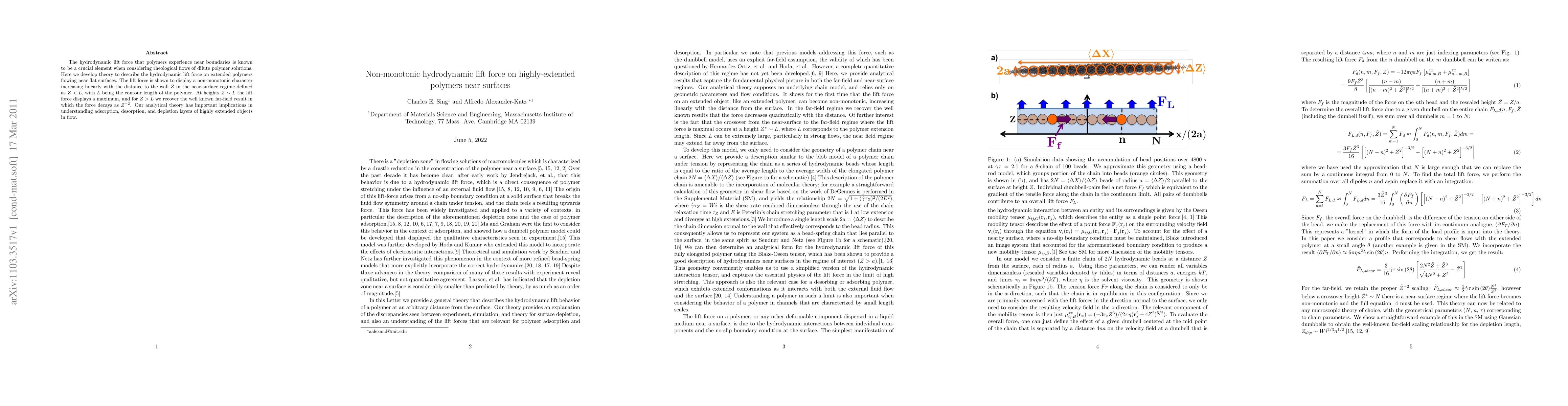 extended polymers flowing near flat surfaces. The lift force is shown to