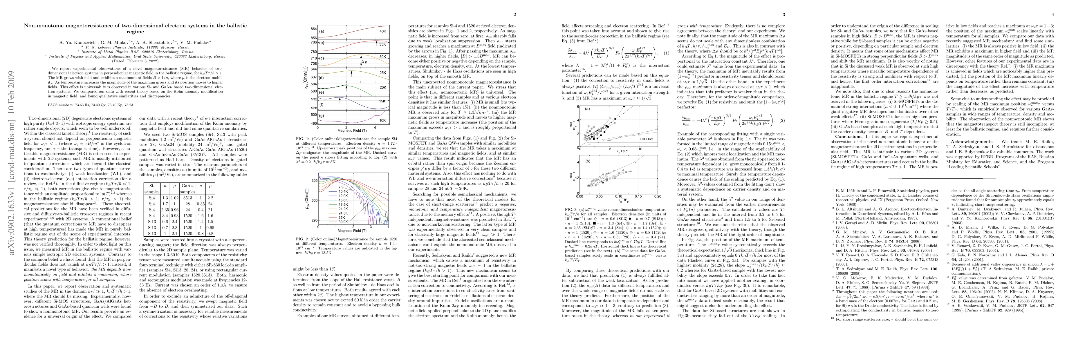 This paper reports a novel non-monotonic magnetoresistance behavior in two-dimensional electron systems under a perpendicular magnetic field in the ballistic regime, showing a peak that shifts to higher fields with increasing temperature. The observed behavior is compared with theoretical models, revealing both qualitative agreement and discrepancies.