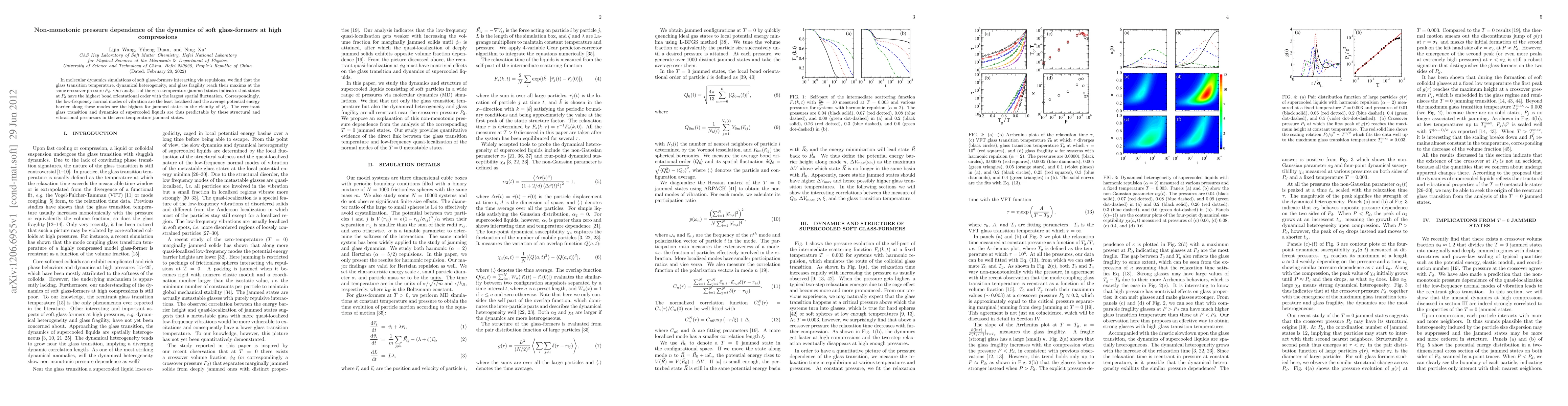 This paper reports on molecular dynamics simulations revealing that the glass transition temperature, dynamical heterogeneity, and glass fragility of soft glass-formers peak at a crossover pressure $P_d$. At $P_d$, jammed states exhibit the highest bond orientational order and largest spatial fluctuations, correlating with the least localized low-frequency vibrational modes and highest potential energy barriers.