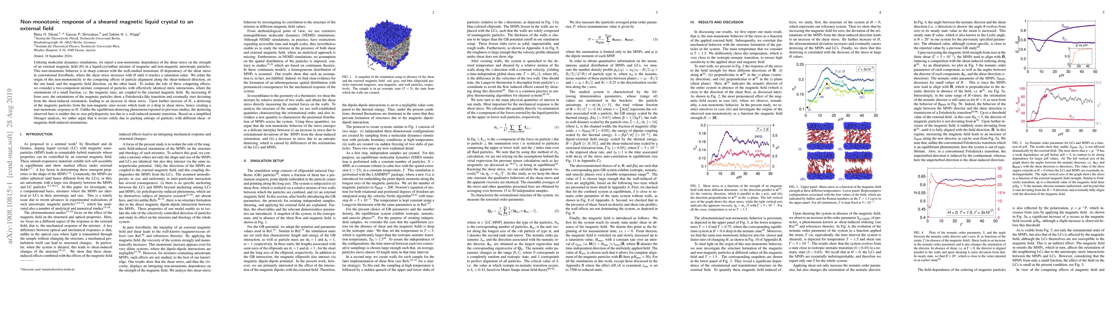 This study reveals a non-monotonic relationship between shear stress and external magnetic field strength in a liquid-crystalline mixture, contrasting with the monotonic behavior in conventional ferrofluids. The non-monotonicity arises from competing particle alignment effects, leading to a complex interplay between shear-induced and magnetic-field-induced orientations.