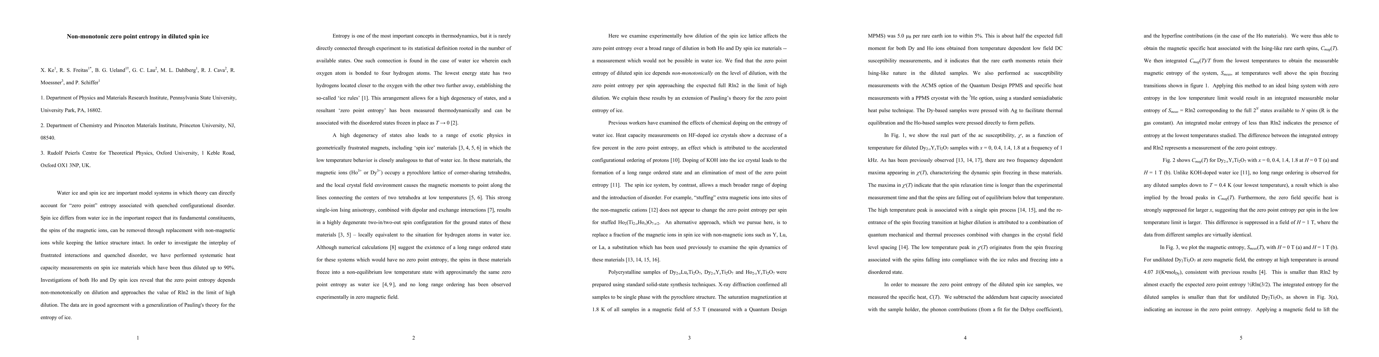This study investigates the zero point entropy in diluted spin ice materials, finding that it varies non-monotonically with dilution and approaches Rln2 at high dilution. The results align with a generalized version of Pauling's theory for ice entropy.