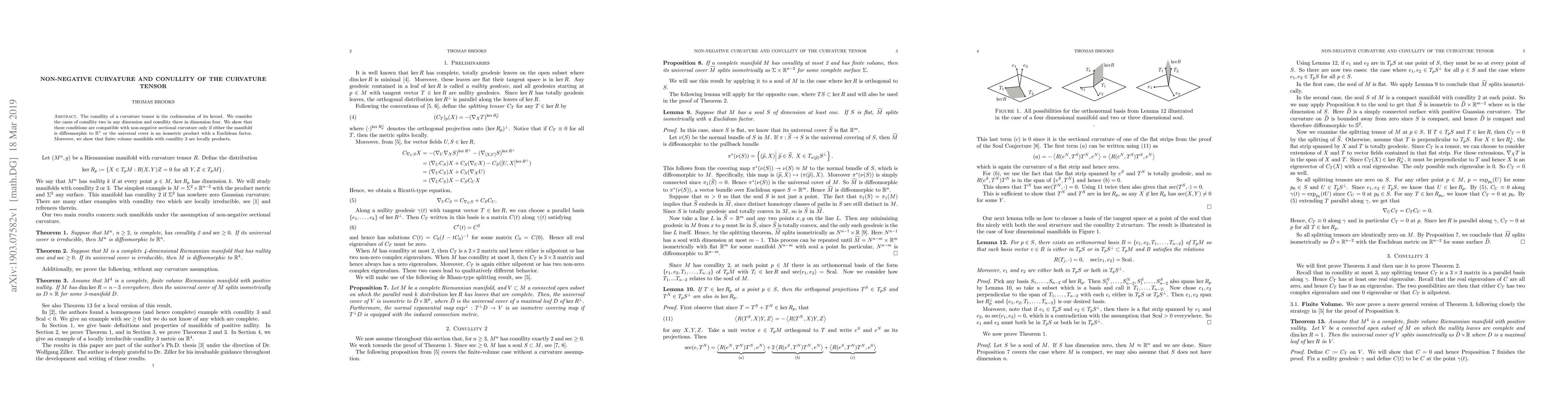 The conullity of a curvature tensor is the codimension of its kernel. We consider the cases of conullity two in any dimension and conullity three in dimension four. We show that these conditions are compatible with non-negative sectional curvature only if either the manifold is diffeomorphic to $\mathbb{R}^n$ or the universal cover is an isometric product with a Euclidean factor. Moreover, we show that finite volume manifolds with conullity 3 are locally products.
