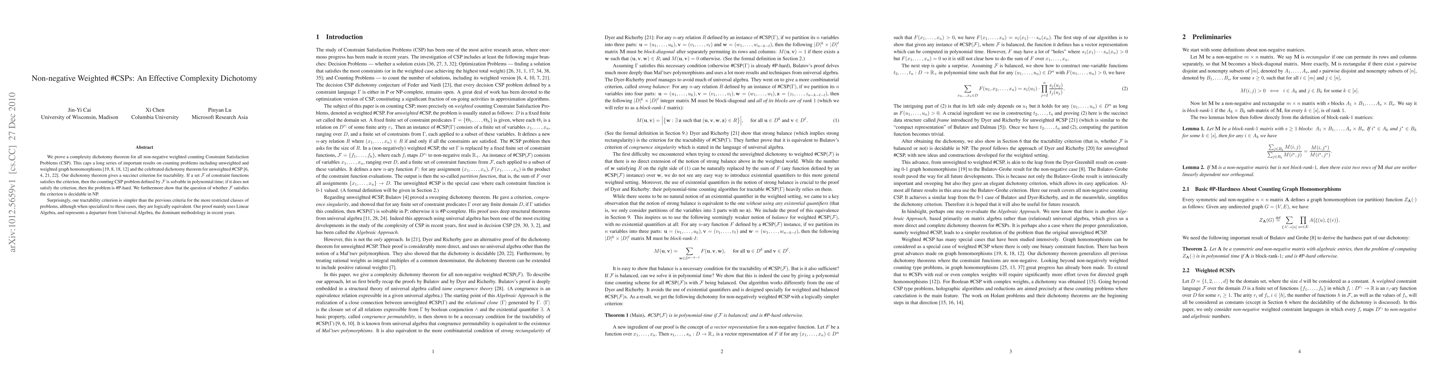 This paper establishes a complexity dichotomy for non-negative weighted counting Constraint Satisfaction Problems (CSP), providing a simple criterion for tractability based on linear algebra. Problems satisfying the criterion are solvable in polynomial time, while those not satisfying it are #P-hard, with the criterion's satisfaction being decidable in NP.