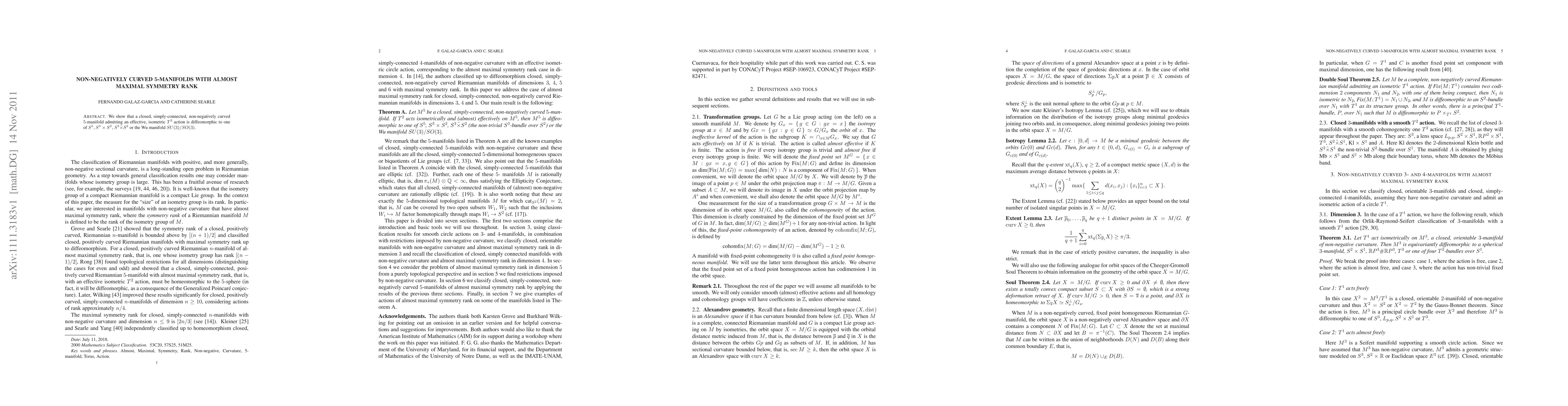 This paper demonstrates that closed, simply-connected, non-negatively curved 5-manifolds with an effective $T^2$ action are diffeomorphic to $S^5$, $S^3\times S^2$, $S^3\tilde{\times} S^2$, or the Wu manifold $SU(3)/SO(3)$. The study focuses on the implications of almost maximal symmetry rank in such manifolds.