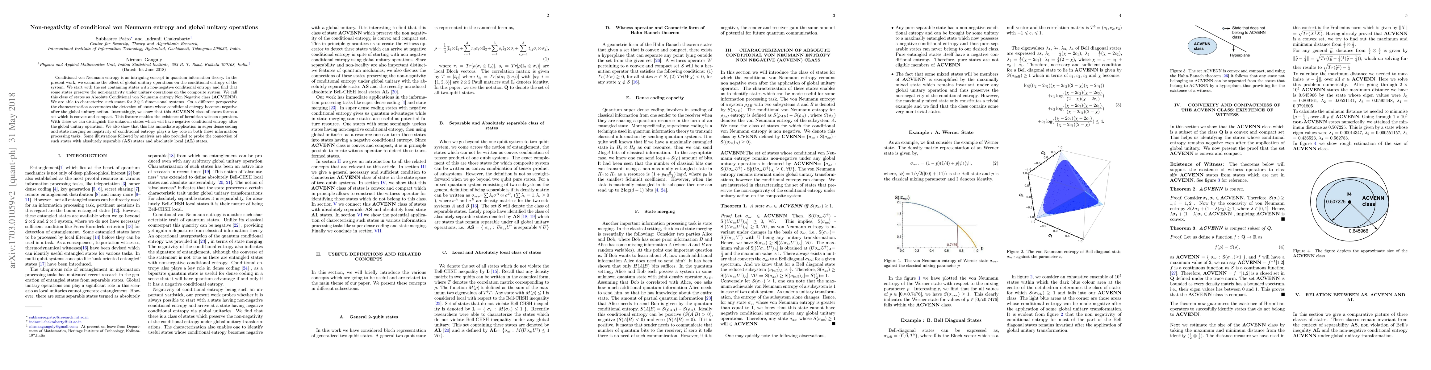 This paper explores the preservation of non-negativity of conditional von Neumann entropy under global unitary operations in quantum systems, identifying a class of states termed Absolute Conditional von Neumann entropy Non Negative class (ACVENN). It characterizes these states for 2×2 dimensional systems and demonstrates their convex and compact nature, which allows for the detection of states with negative conditional entropy post-unitary operations.
