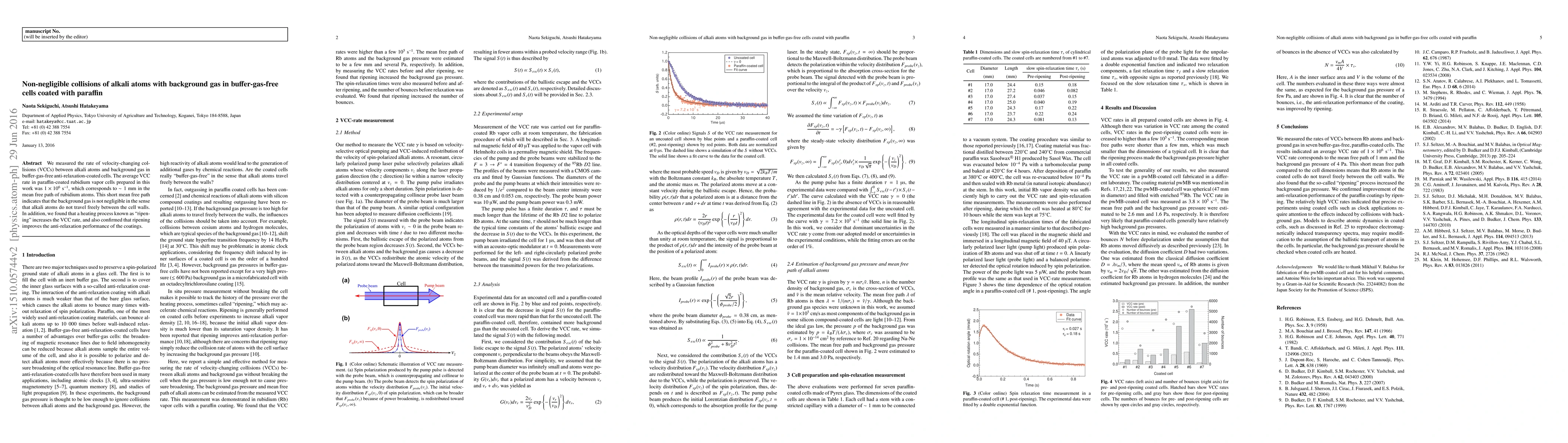 This study measures the rate of velocity-changing collisions between alkali atoms and background gas in paraffin-coated, buffer-gas-free cells, finding an average rate of $1 \times 10^{6}$ s$^{-1}$ and a mean free path of $\sim$1 mm, indicating significant background gas interaction. Additionally, "ripening" enhances collision rates and improves anti-relaxation performance of the coatings.