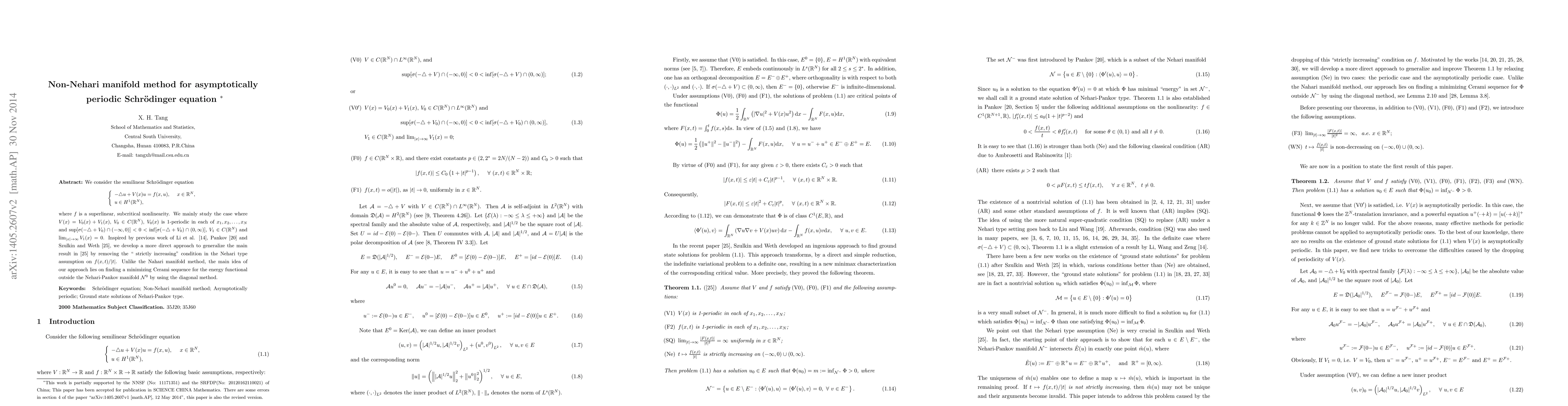 We consider the semilinear Schr\"odinger equation $$ \left\{ \begin{array}{ll} -\triangle u+V(x)u=f(x, u), \ \ \ \ x\in {\R}^{N}, u\in H^{1}({\R}^{N}), \end{array} \right. $$ where $f$ is a superlinear, subcritical nonlinearity. We mainly study the case where $V(x)=V_0(x)+V_1(x)$, $V_0\in C(\mathbb{R}^N)$, $V_0(x)$ is 1-periodic in each of $x_1, x_2, \ldots, x_N$ and $\sup[\sigma(-\triangle +V_0)\cap (-\infty, 0)]<0<\inf[\sigma(-\triangle +V_0)\cap (0, \infty)]$, $V_1\in C(\mathbb{R}^N)$ and $\lim_{|x|\to\infty}V_1(x)=0$. Inspired by previous work of Li et al. \cite{LWZ}, Pankov \cite{Pa} and Szulkin and Weth \cite{Sz}, we develop a more direct approach to generalize the main result in \cite{Sz} by removing the "strictly increasing" condition in the Nehari type assumption on $f(x, t)/|t|$. Unlike the Nahari manifold method, the main idea of our approach lies on finding a minimizing Cerami sequence for the energy functional outside the Nehari-Pankov manifold $\mathcal{N}^{0}$ by using the diagonal method.