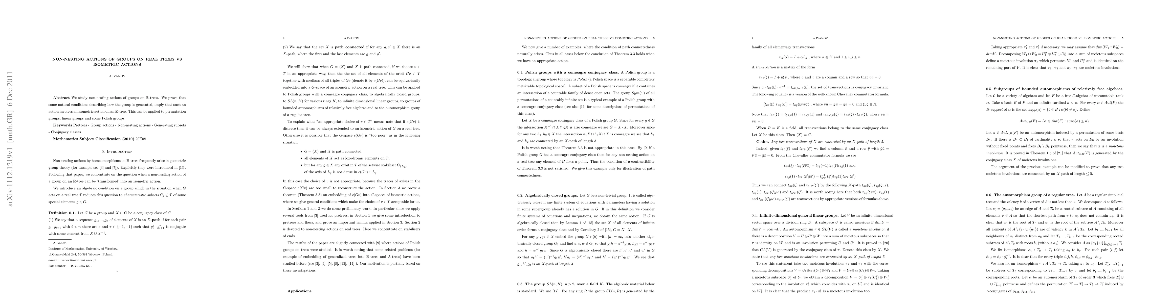 We study non-nesting actions on R-trees. We prove that some natural conditions describing how the group is generated, imply that such an action involves an isometric action on an R-tree. This can be applied to permutation groups, linear groups and some Polish groups.