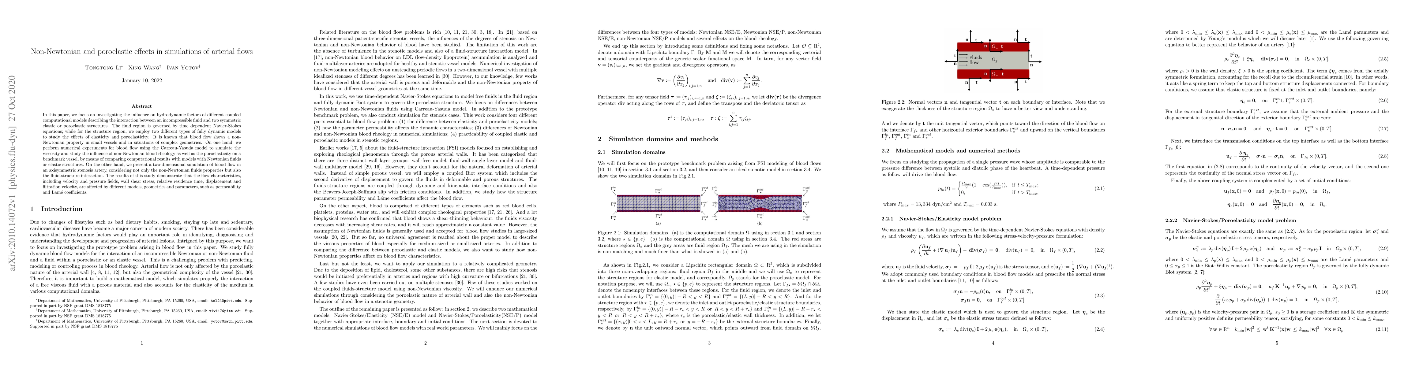 This paper investigates the impact of non-Newtonian blood rheology and poroelasticity on arterial flow simulations using coupled computational models. It compares results from non-Newtonian fluid models with Newtonian fluid models and highlights the influence of fluid-structure interaction on flow characteristics.
