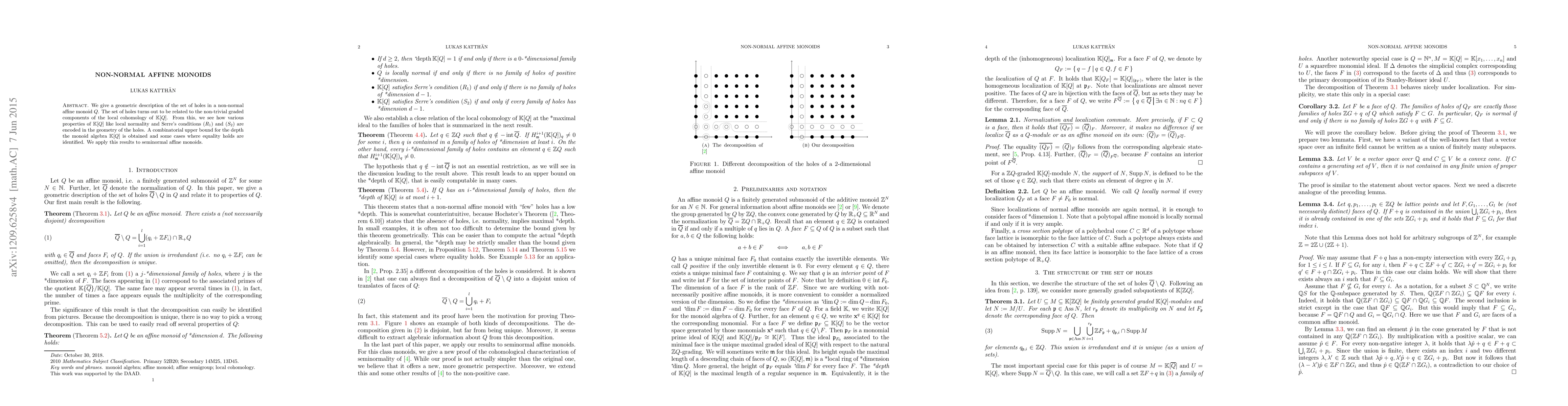 This paper provides a geometric interpretation of holes in non-normal affine monoids $Q$, linking them to local cohomology's graded components. It establishes how properties of $k[Q]$ are reflected in the geometry of these holes and derives a combinatorial upper bound for the depth of the monoid algebra, with specific cases where equality occurs.