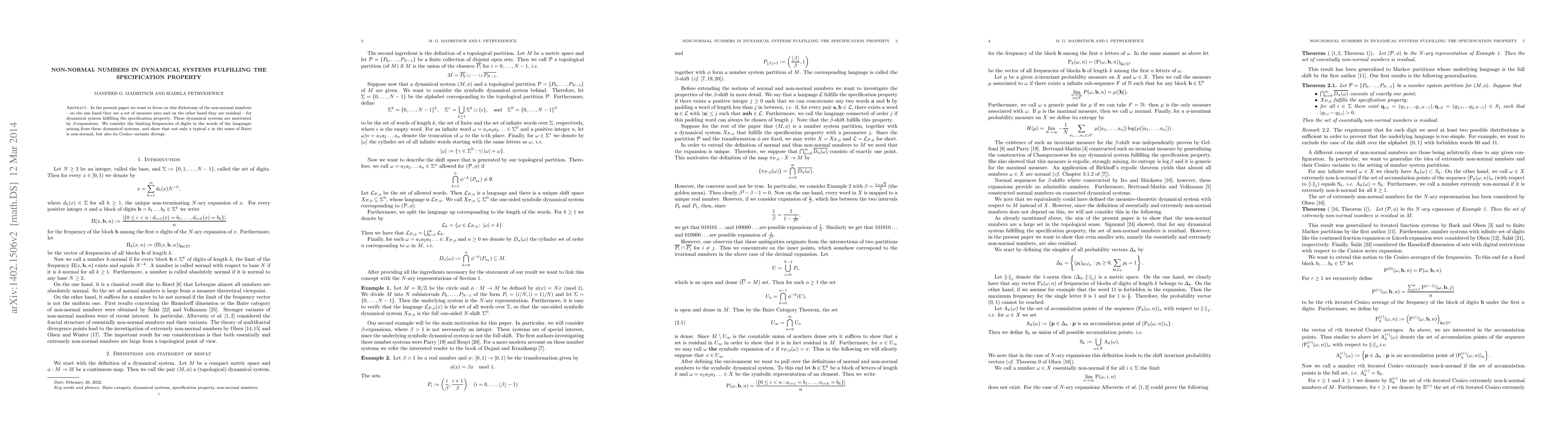 This paper explores the dichotomy of non-normal numbers in dynamical systems adhering to the specification property, motivated by u03bb-expansions. It demonstrates that typical points, along with their Ces`aro variants, exhibit non-normality through diverging digit frequencies. This study highlights the residual nature of non-normal numbers despite being a set of measure zero.