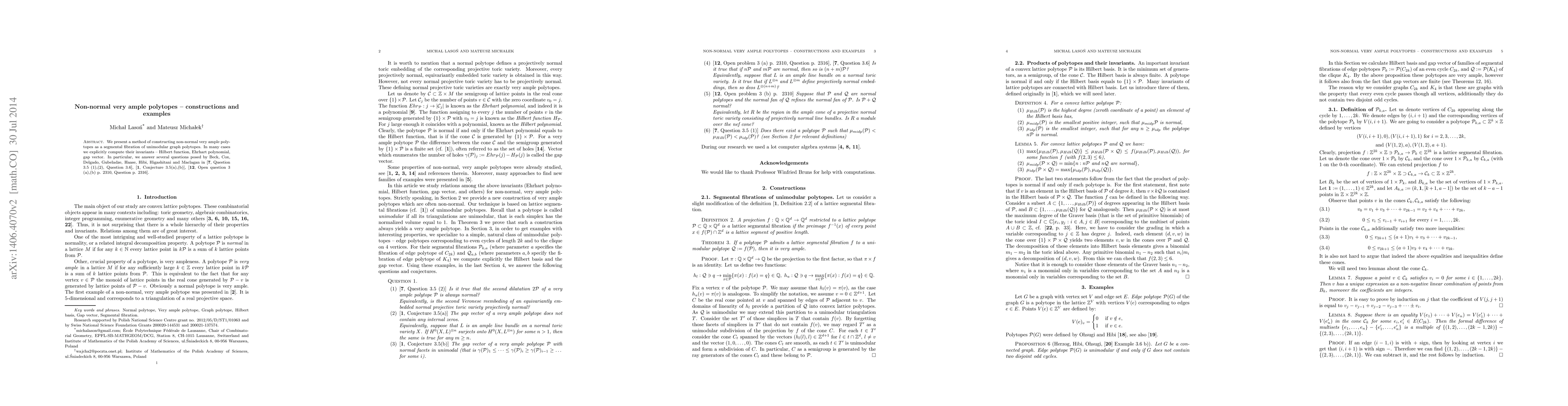 The paper introduces a method to construct non-normal very ample polytopes via segmental fibration of unimodular graph polytopes, providing explicit computations for their invariants. It addresses and answers several open questions in the field.