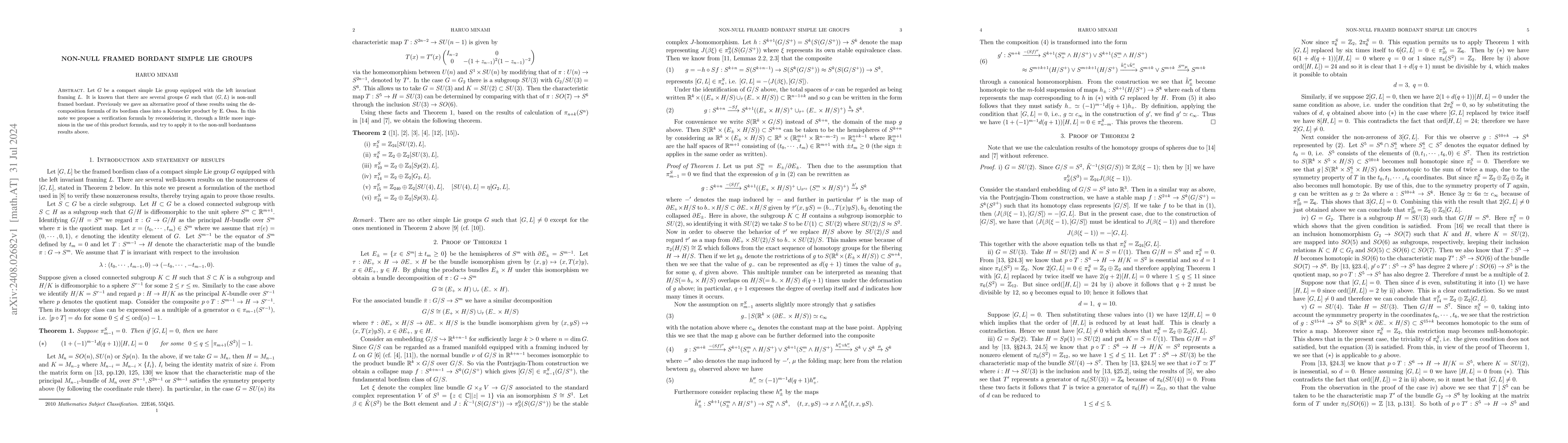 This paper explores compact simple Lie groups $G$ with a left invariant framing $L$ and investigates their non-null framed bordant properties. The authors propose a refined verification formula using E. Ossa's decomposition method to reassess and enhance the understanding of these groups' bordism classes.