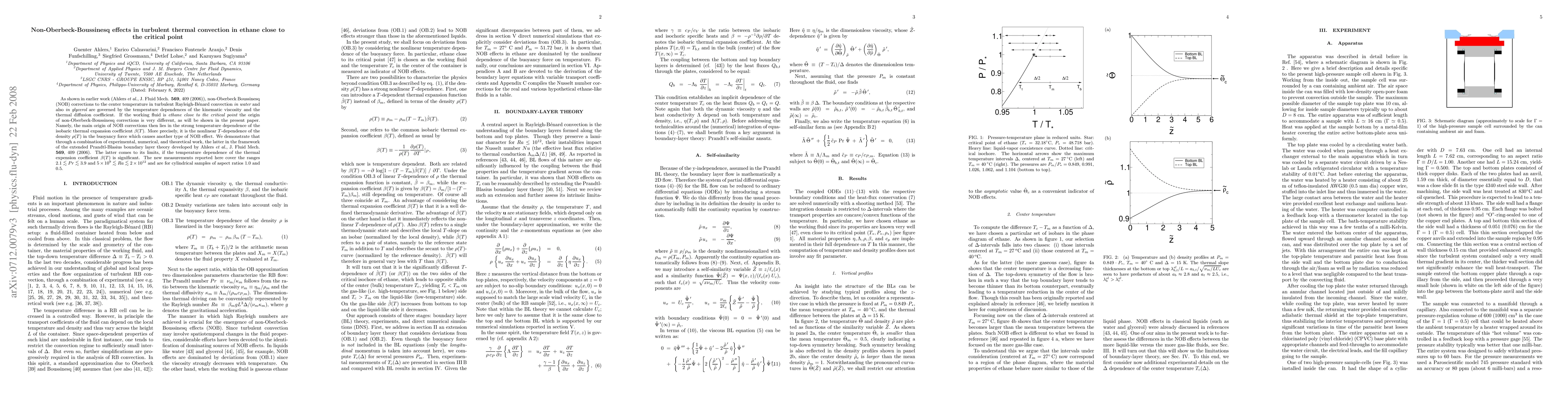 This paper investigates turbulent thermal convection in ethane near its critical point, revealing that the non-Oberbeck-Boussinesq (NOB) corrections differ from those in water and glycerol due to the strong temperature dependence of the isobaric thermal expansion coefficient. The study combines experimental, numerical, and theoretical approaches to demonstrate that the nonlinear temperature dependence of density drives a distinct NOB effect.