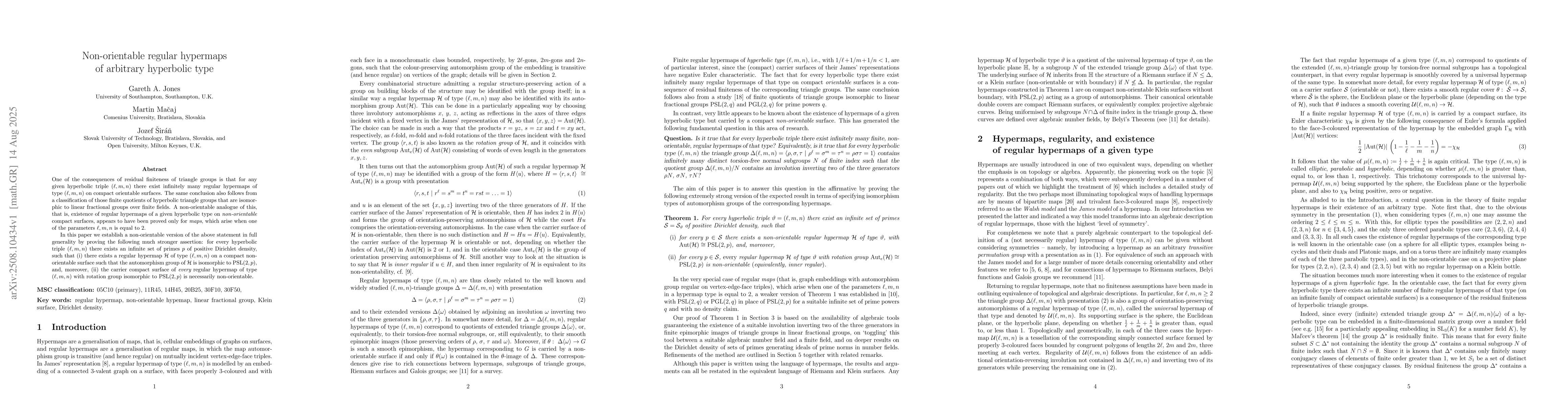 One of the consequences of residual finiteness of triangle groups is that for any given hyperbolic triple $(\ell,m,n)$ there exist infinitely many regular hypermaps of type $(\ell,m,n)$ on compact orientable surfaces. The same conclusion also follows from a classification of those finite quotients of hyperbolic triangle groups that are isomorphic to linear fractional groups over finite fields. A non-orientable analogue of this, that is, existence of regular hypermaps of a given hyperbolic type on {\em non-orientable} compact surfaces, appears to have been proved only for {\em maps}, which arise when one of the parameters $\ell,m,n$ is equal to $2$. In this paper we establish a non-orientable version of the above statement in full generality by proving the following much stronger assertion: for every hyperbolic triple $(\ell,m,n)$ there exists an infinite set of primes $p$ of positive Dirichlet density, such that (i) there exists a regular hypermap $\mathcal{H}$ of type $(\ell,m,n)$ on a compact non-orientable surface such that the automorphism group of $\mathcal{H}$ is isomorphic to $\PSL(2,p)$, and, moreover, (ii) the carrier compact surface of {\em every} regular hypermap of type $(\ell,m,n)$ with rotation group isomorphic to $\PSL(2,p)$ is necessarily non-orientable.