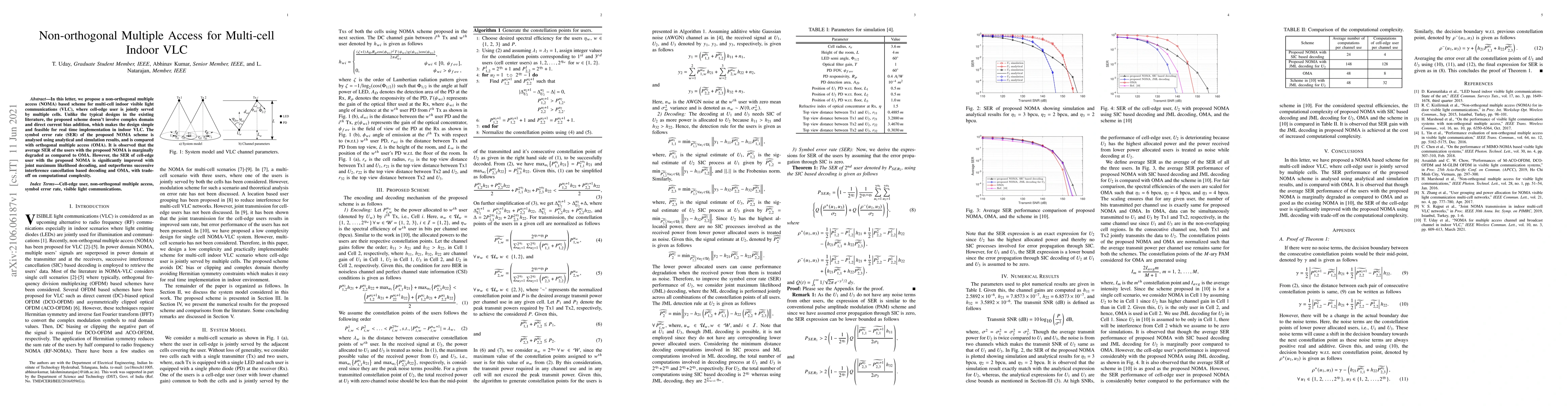 This paper proposes a non-orthogonal multiple access (NOMA) scheme for multi-cell indoor visible light communication (VLC) that serves cell-edge users jointly across multiple cells. The scheme simplifies implementation without complex domain operations, and while it marginally increases average symbol error rate (SER) compared to orthogonal multiple access (OMA), it significantly improves SER for cell-edge users with joint maximum likelihood decoding.