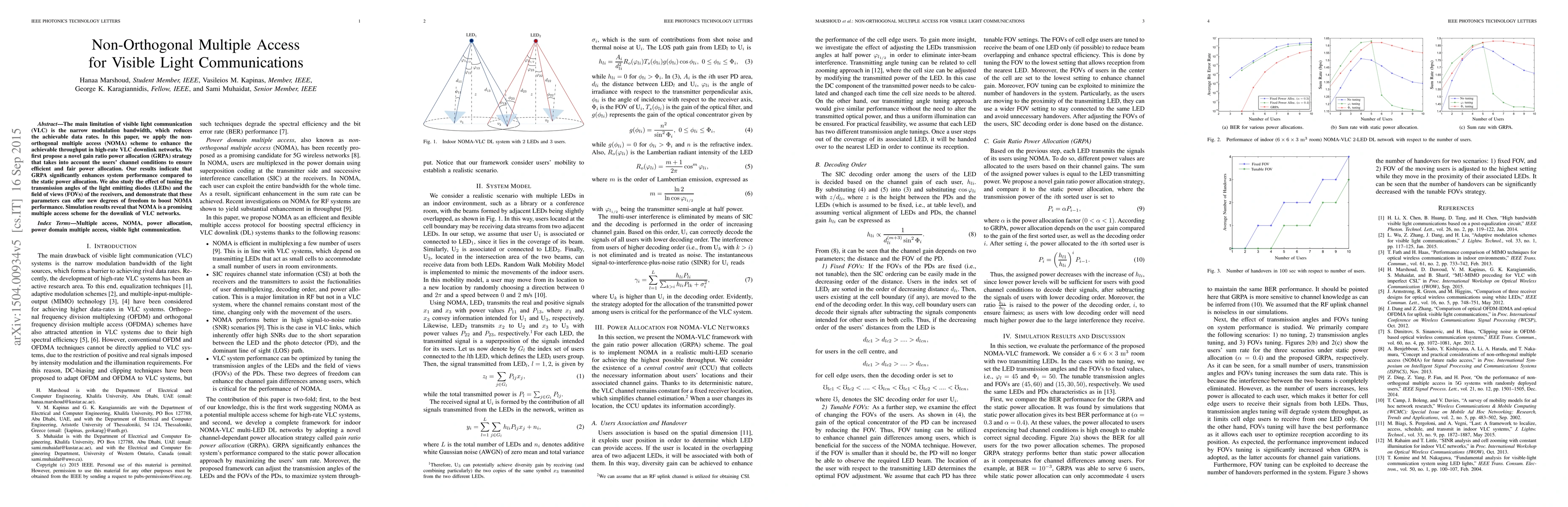 This paper proposes a non-orthogonal multiple access (NOMA) scheme with a gain ratio power allocation (GRPA) strategy to enhance data rates in visible light communication (VLC) networks. Simulation results show that GRPA significantly improves throughput compared to static allocation, and adjusting LED angles and receiver fields of view further boosts NOMA performance.