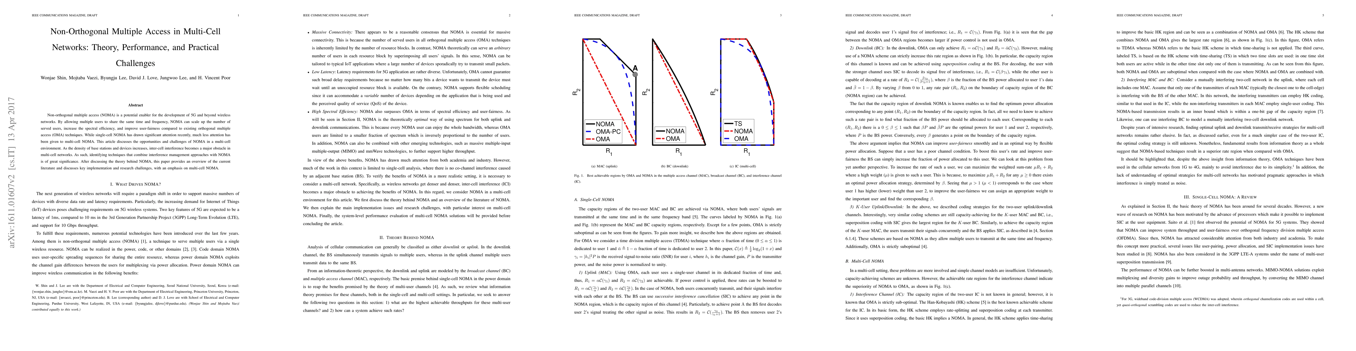 This paper explores non-orthogonal multiple access (NOMA) in multi-cell networks, highlighting its potential to enhance spectral efficiency and user-fairness. It addresses the challenges posed by inter-cell interference and discusses techniques for combining interference management with NOMA.